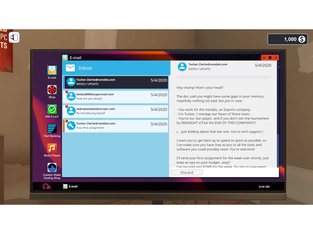 Spend the week in the workshop getting your team's PCs ready. Watch your phone and email like a hawk, as requests now come from multiple places. Earn extra money by completing side jobs for players and your manager. But don't lose focus on the most important task – making sure the team's rigs are perfect for match day.