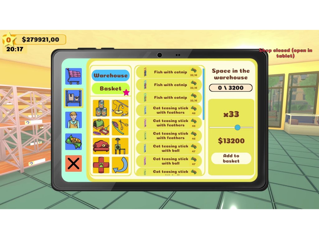 Manage and develop your pet shop, expanding its space, possibilities and assortment. Take care of your customers and their opinion, buy new properties nearby and grow your business!