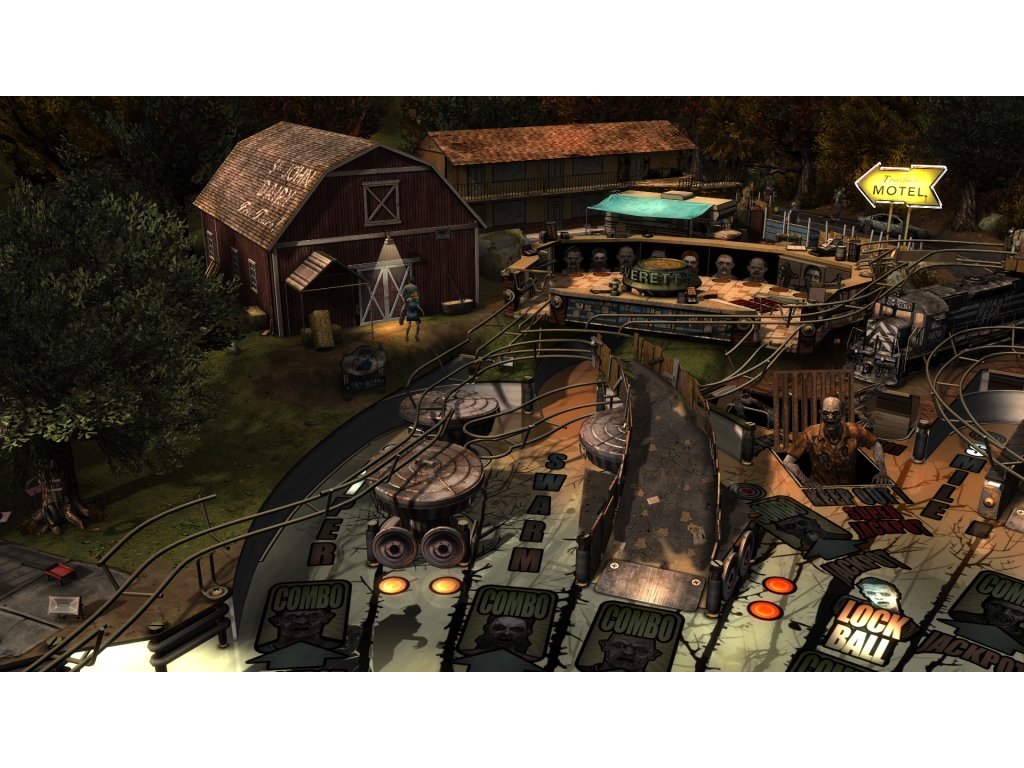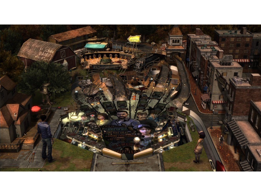 - The Walking Dead Pinball table playfield is a tour of the most iconic locations from the game, including the St. John’s Dairy Farm, Travelier Motel, Bell Tower, Train & Level Crossing, RV and more.