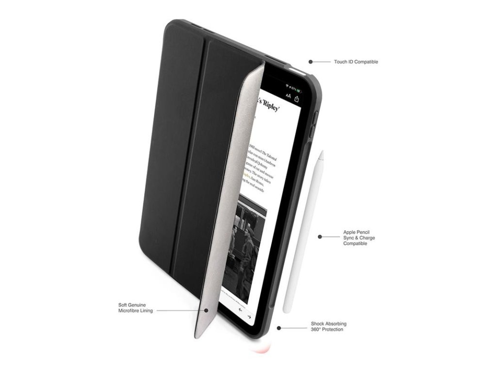 Ochranné puzdro pre iPad 10.9" 2022/iPad 11" A16 2025 - obal môžete zložiť ako Origami do dvoch rôznych stojanových polôh - prémiový PU a jemná podšívka z mikrovlákna pre ochranu obrazovky - poskytuje ochranu pred poškriabaním, znečistením a pri nárazoch - nárazuvzdorný TPU materiál a ochrana proti pádom z 1,1 m - antimikrobiálny povrch eliminuje 99,9% baktérií - automatické uspanie / prebudenie pri otvorení / zatvorení iPadu - funkcia SmartCover zvyšuje životnosť batérie o 20% - umožňuje magnetické uchytenie a nabíjanie Apple Pencil 2 aj Apple Pencil (USB-C) - určené pre iPad 10,9" 2022/iPad 11" A16 2025Dodatočné parametre