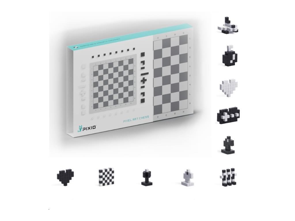 Súprava PIXIO 70101 Chess (Šachy) obsahuje šachovnicu na šach a iné hry s použitím dvojfarebnej hracej dosky 8x8 a celkovo 70 čiernobielych kociek, z ktorých môžete stavať nielen šachové figúrky a hrať hru, ale aj mnoho ďalších modelov. Umožnia oživiť vaše kreatívne nápady a prinesú farebnú radosť do života. Začnite stavbou jednoduchých modelov podľa pokynov a potom, až budete pripravení, prejdite k vytváraniu vlastných návrhov. S touto sadou si môžete postaviť šachové figúrky, raketoplán, gamepad, cieľovú vlajku, bombu, biele alebo čierne srdce a mnoho ďalších. Pixio je splnený sen fanúšikov Pixel Artu, hráčov Minecraftu a všetkých, ktorí sa radi hrajú. Použite ho ako učebný zdroj na rozvoj detskej kreativity. Obsahuje 35 čiernych a 35 bielych kociek a šachovnicu. Použite kocky podľa svojej fantázie a vytvorte krásne tvary a modely.