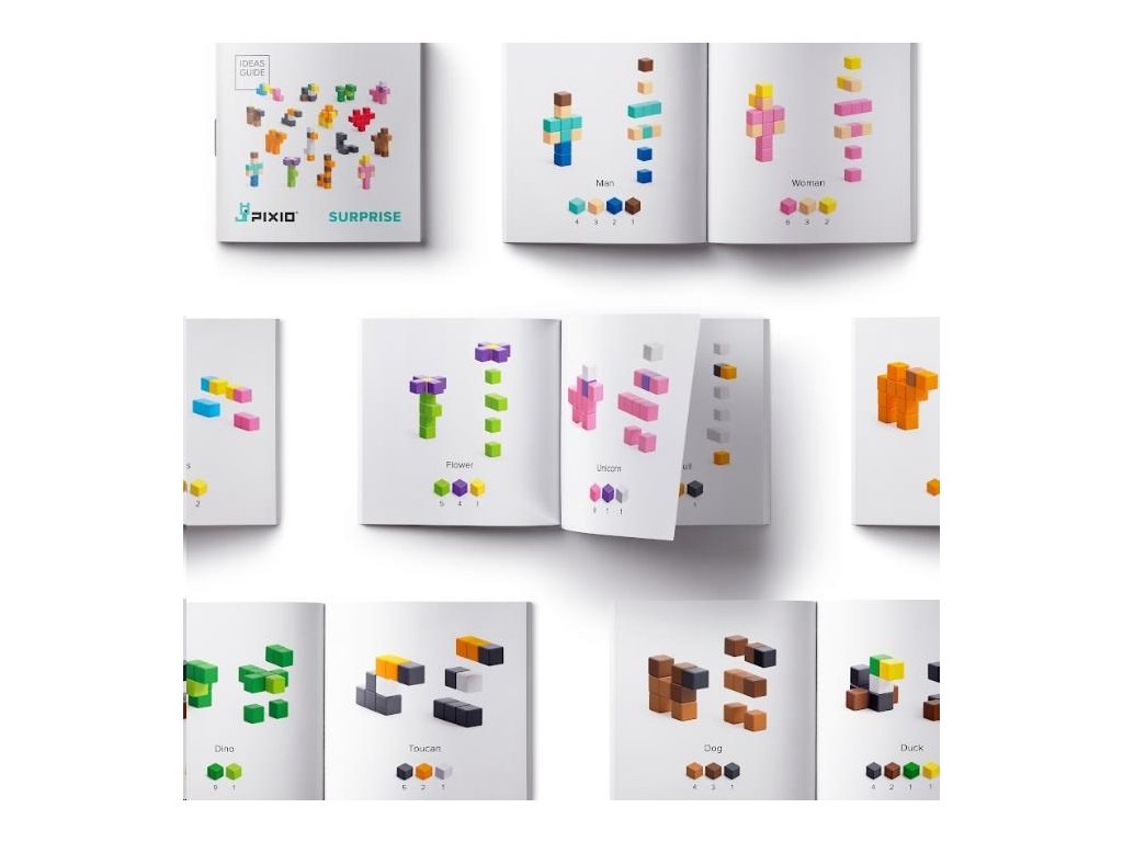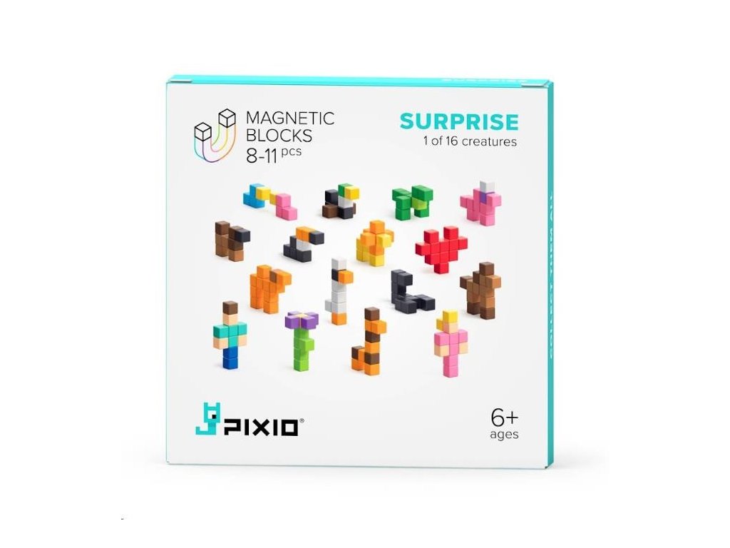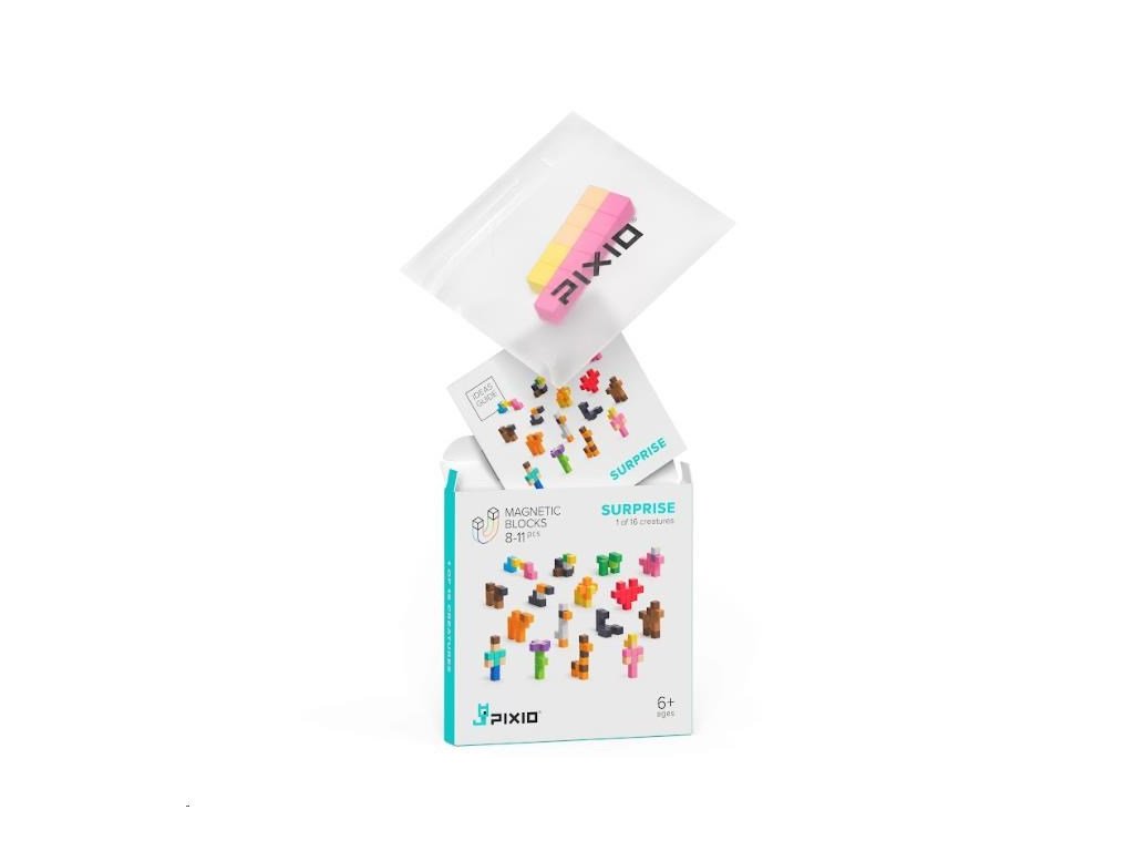 PIXIO 60101 - Surprise (Prekvapenie) je úvod do sveta Pixio. V každom balení nájdete jeden zo 16 kompaktných modelov pozostávajúcich z 8-11 kociek. Sú veľmi jednoduché, s jednoduchým procesom zostavovania, takže budú zábavné aj pre Pixio nováčikov. Kocky všetkých 16 modelov spolu tvoria materiál na stavbu väčších a farebnejších výtvorov. Návod na zostavenie bonusových modelov nájdete v aplikácii Pixio. Pixio je splnený sen fanúšikov Pixel Artu, hráčov Minecraftu a všetkých, ktorí sa radi hrajú. Použite ho ako učebný zdroj na rozvoj kreativity detí. Obsahuje náhodný mix 8-11 kociek, z ktorých si môžete zostaviť jeden zo 16 modelov série Surprise, alebo čokoľvek iné podľa vlastnej fantázie.