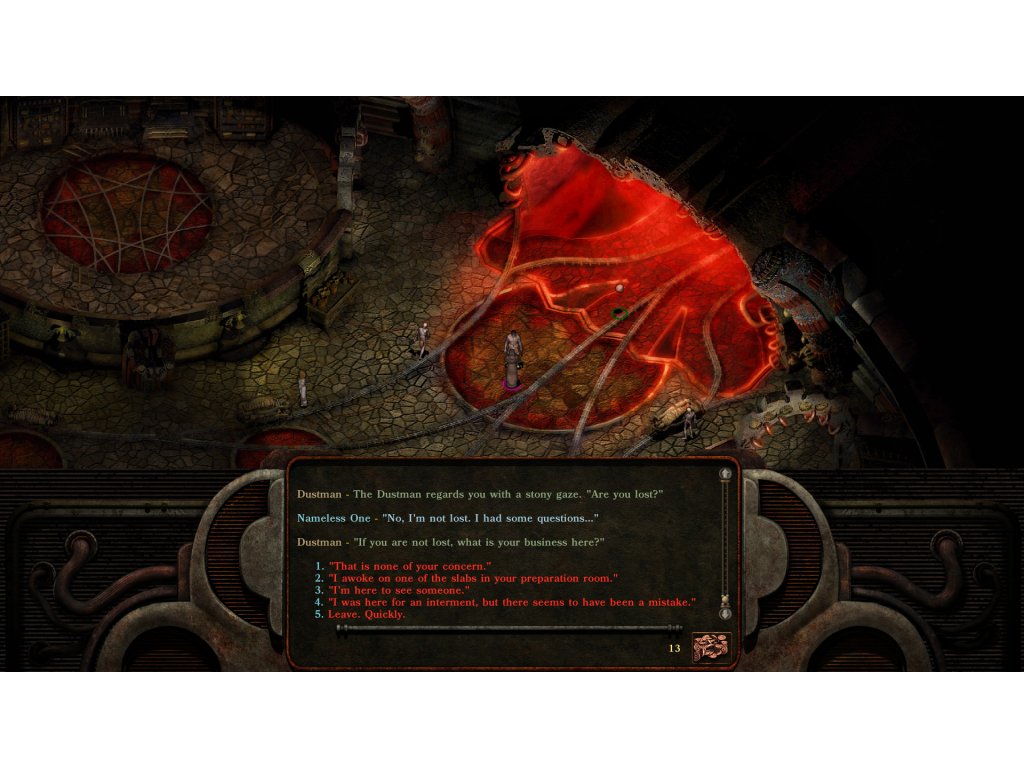 - Pick Your Path: Character creation is just the beginning. The Nameless One can change his class, alignment, and even gain new abilities based on your choices.