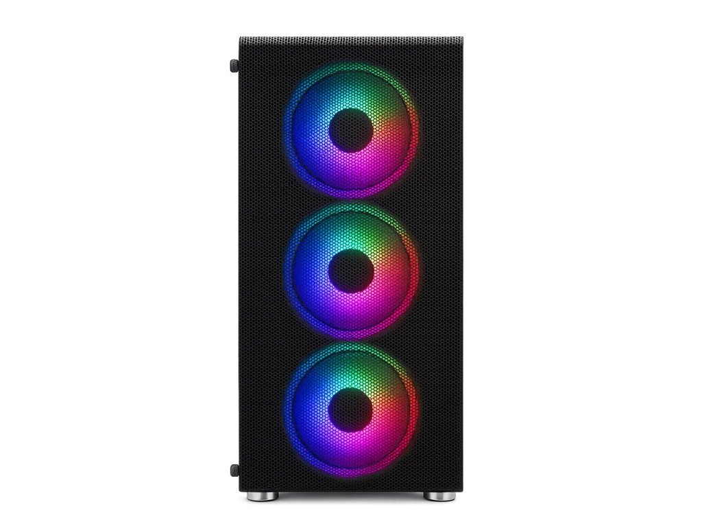 ATX s priehľadným bočným panelom (tvrdené temperované sko), s perforovaným predným panelom