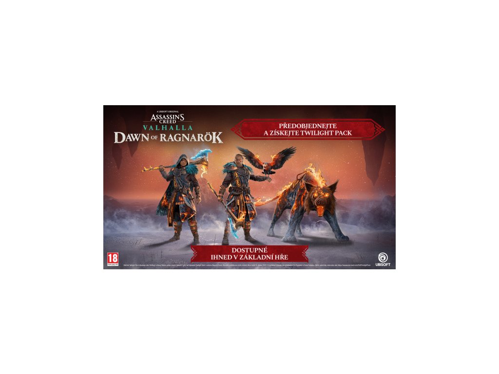 ** Ponuka sa môže zmeniť. Na získanie prístupu k obsahu je potrebná hra Assassin's Creed Valhalla. Hra sa predáva samostatne. Balíček Twilight Pack môže byť k dispozícii na zakúpenie a/alebo ako darček samostatne kedykoľvek podľa uváženia spoločnosti Ubisoft. Ponuka Twilight Pack končí 9. apríla.