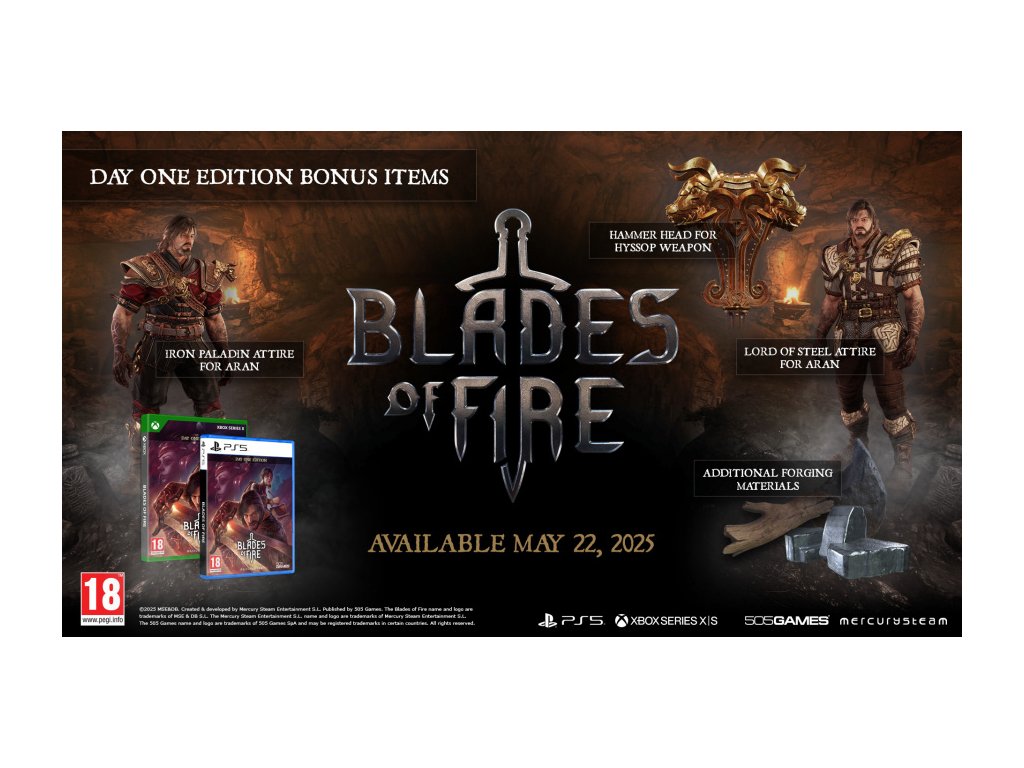 PS5 Blades of Fire Day 1 EditionZažite epické dobrodružstvo v hre Blades of Fire, najnovšom akčnom titule od oceneného štúdia MercurySteam! Staňte sa Aranom de Lira, statočným bojovníkom kráľovskej gardy, a postavte sa hrozivým nepriateľom vo svete plnom záhad, nebezpečenstiev a osudu. Ukujte si svoju vlastnú legendu a vydajte sa na výpravu, ktorá otestuje vašu odvahu a taktiku v unikátnom bojovom systéme.