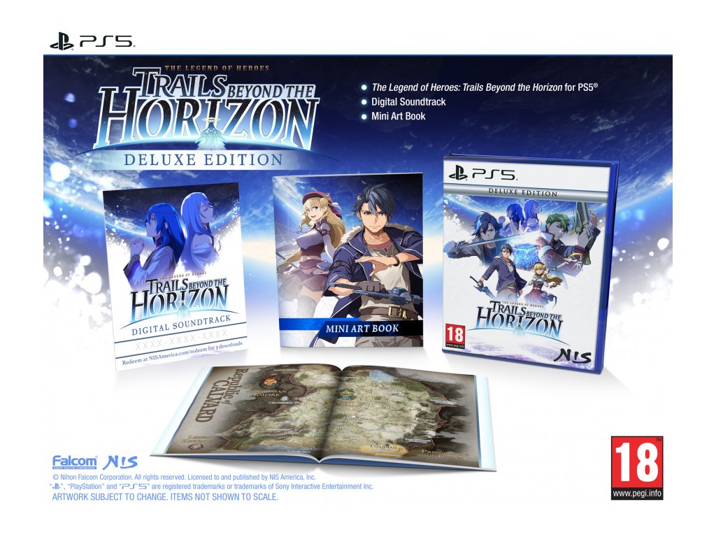 Čo je The Legend of Heroes: Trails beyond the Horizon Deluxe Edition (PS5)?Van Arkride a členovia Arkride Solutions sú späť – a tentoraz ide o budúcnosť celého kontinentu Zemuria! Ľudia s napätím sledujú prípravy na prvú vesmírnu misiu ľudstva. Nečakané pozvanie od spoločnosti Marduk na účasť vo vysoko technologickom výcvikovom teste spojí Vana Arkridea, Popolavého rytiera Reana Schwarzera a otca Kevina Grahama na ceste vedúcej k samotnému jadru tajomstiev Zemurie.