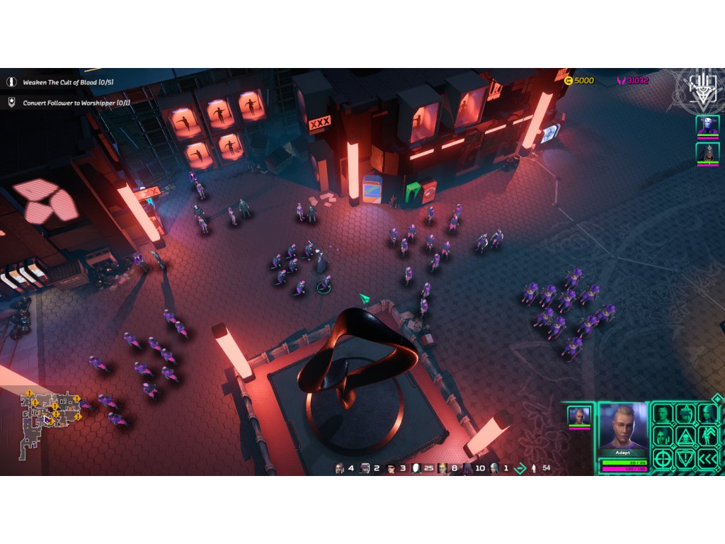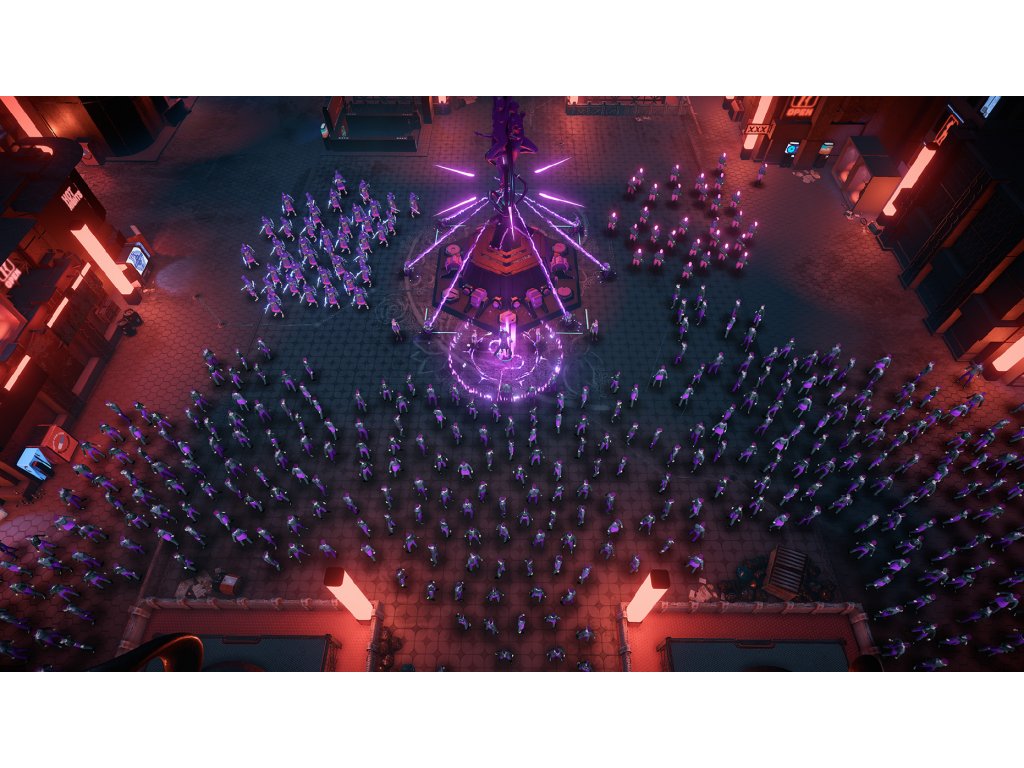 In Re-Legion, players Follow Elion’s journey from a lone prophet to the most powerful advocate of religion in the city. Introducing a new alternative to the usual economic and resource management used in RTS games, Re-Legion allows players to convert ordinary non-believing citizens into their units – the followers. Initiated cultists then expand the cult’s possibilities by obtaining cyber-coins to enable upgrades, by praying they increase faith to gain and use special abilities, they hack buildings and ad-boards to expand and control territories, they convert other citizens or fight enemy units and non-believers.