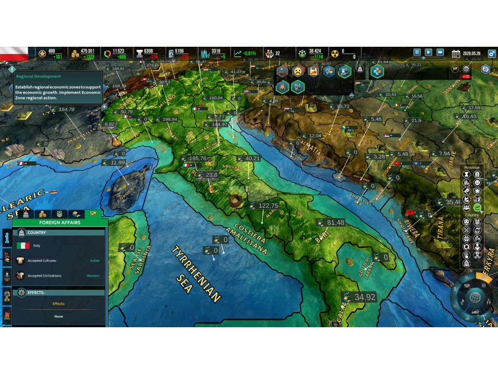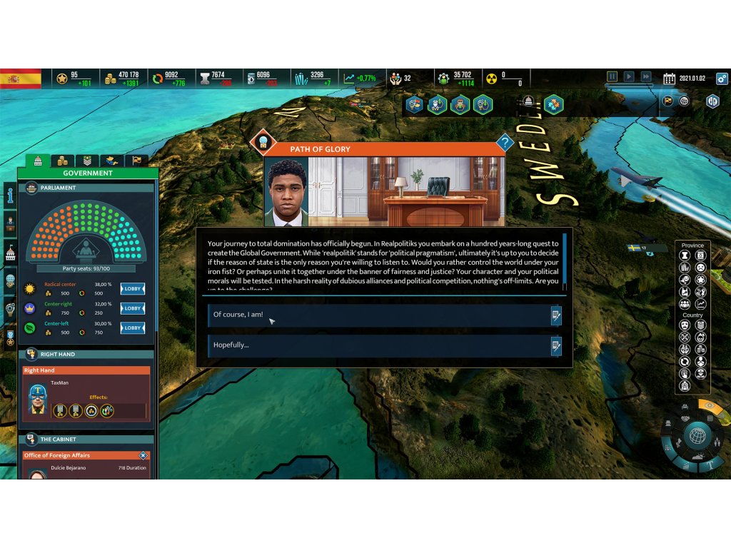 Lead your people to glory and write a new chapter of history in Realpolitiks II, a real-time grand strategy game where you lead any contemporary nation in an attempt to secure world dominance. The road to supremacy is filled with modern world issues as you manage your nation’s economy, command armies, conduct diplomatic and espionage actions, and tackle global threats such as terrorism, pandemics, famine, and more.