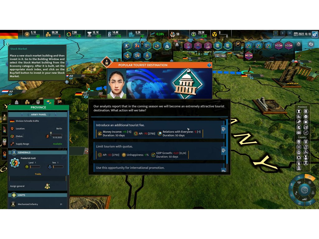 Realpolitiks II delivers a whole new economic system which gives you more control of your country than ever before. Construct new buildings, dictate trading policy, and use your advisors’ special abilities to further improve, or hinder, the life of your citizens. Transition from democracy to totalitarianism too quickly and you might have a rebellion on your hands.
