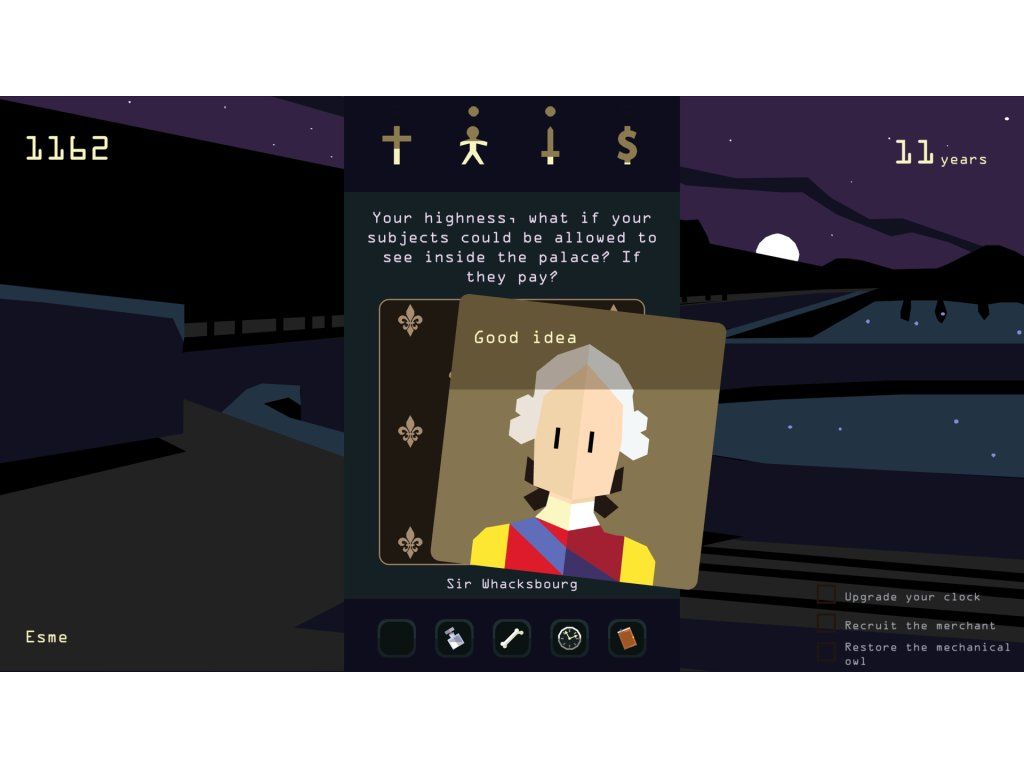 Outwit and outlast those that would seek to depose you and your husband by swiping left or right, making just (or unjust) decisions on all manner of royal matters.
