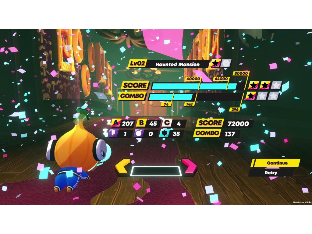 Aside from difficulty modes and highscore achievements, there are several modifiers to ramp up the challenge and replay value. Follow Sprout - the Chosen Onion - on his lightweight and self-aware adventure between music levels. Make funny dialogue interactions, full of silly jokes and pop culture references. Help the adorable inhabitants of the Vegetable Kingdom and face a charming cast of Sweet Villains.