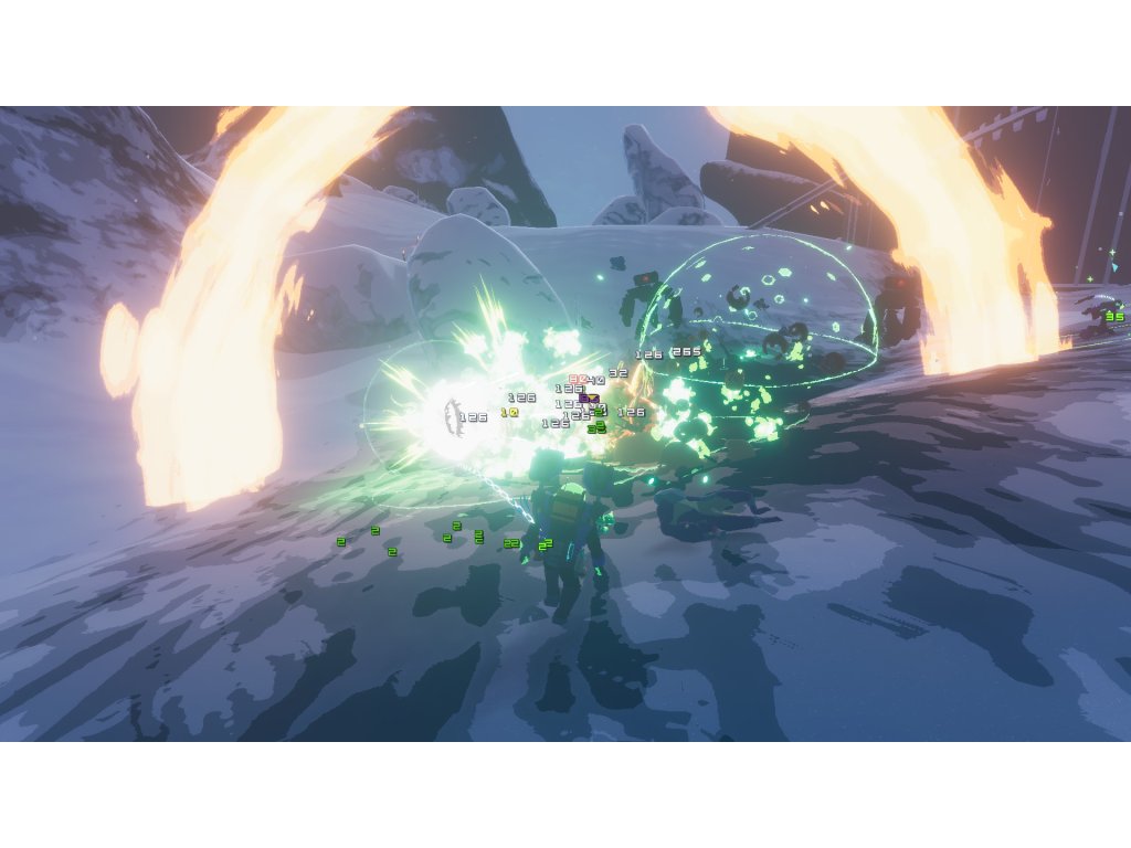 Unlike the first game in the series, which was basically a 2D scrolling shooter, Risk of Rain 2 is set in a fully three-dimensional environment. The player travels through the game locations on foot, exploring underground caves, lush jungles, and elevated plateaus as well as other areas. The locations player will visit in RoR 2 are filled with various obstacles, like treacherous canyons, pits of lava, etc. To get to a higher located places player can use a jetpack, which can also be helpful in the battle against certain enemies. Like in the previous game, the player will be able to collect items, with varied level of rarity, which will grant temporary passive boosts.