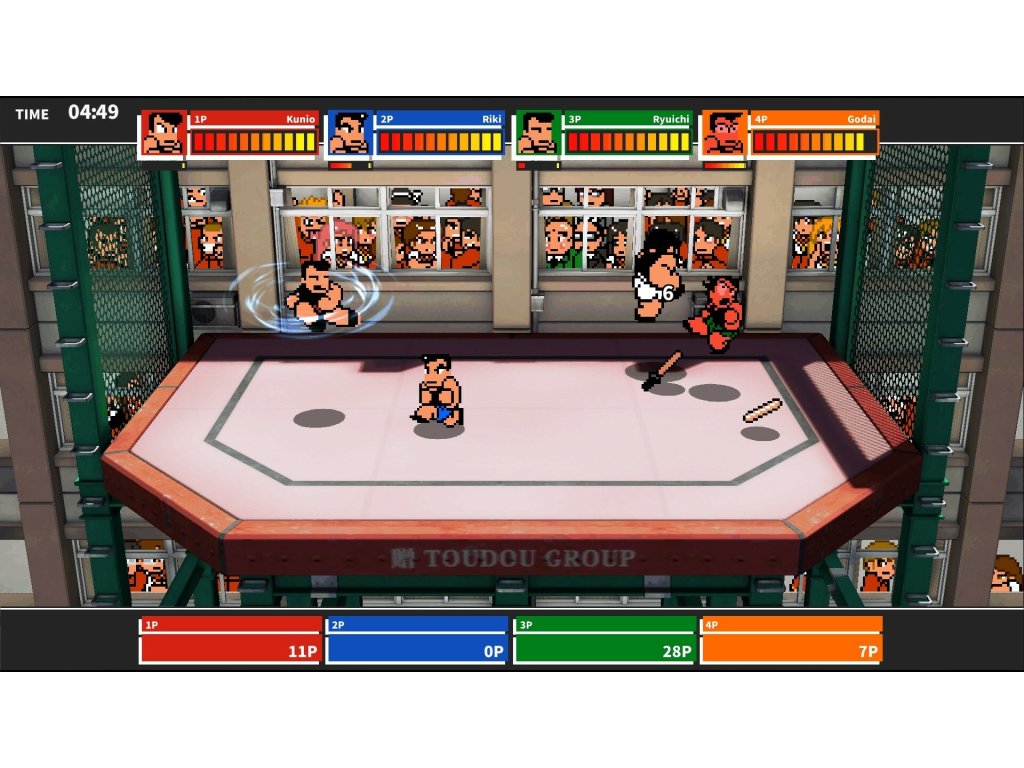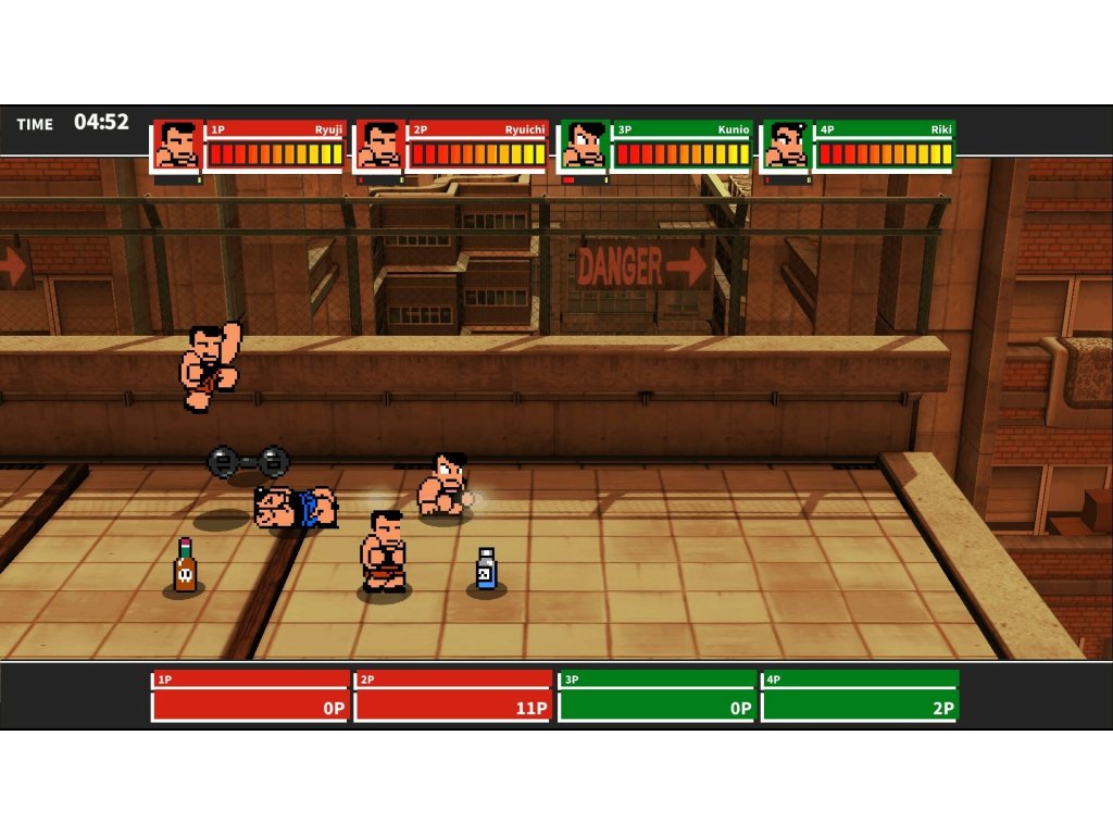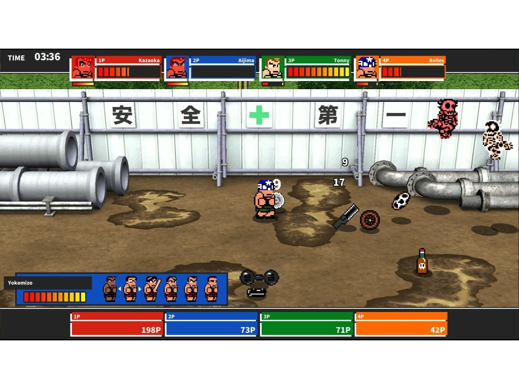 The original battle royal game is back and buffed!! No rules, and fights to the finish where anything goes! Over 180 characters and over 250 different special moves! The Renegade/River City (Nekketsu Kouha Kunio-kun) series has had its share of success in the late 80's, and now, the "Fight it out!" part of its numerous spin-off sports series is back and powered-up!