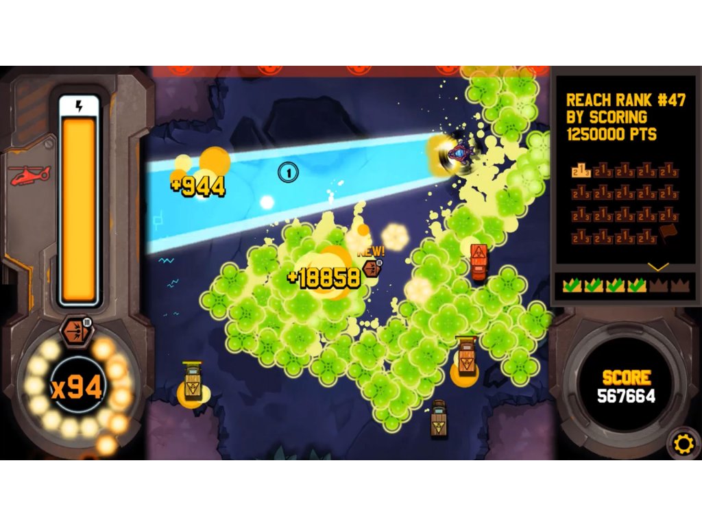 Standard propellers are replaced with deadly ROTOR BLADES that chop up tanks and soldiers to pieces. Activating the Overdrive makes your helicopter an immortal machine of destruction: fly & chop through swarms of enemies while deflecting their bullets back at them, or use your own arsenal of guns, rocket launchers and lasers. Mayhem guaranteed.
