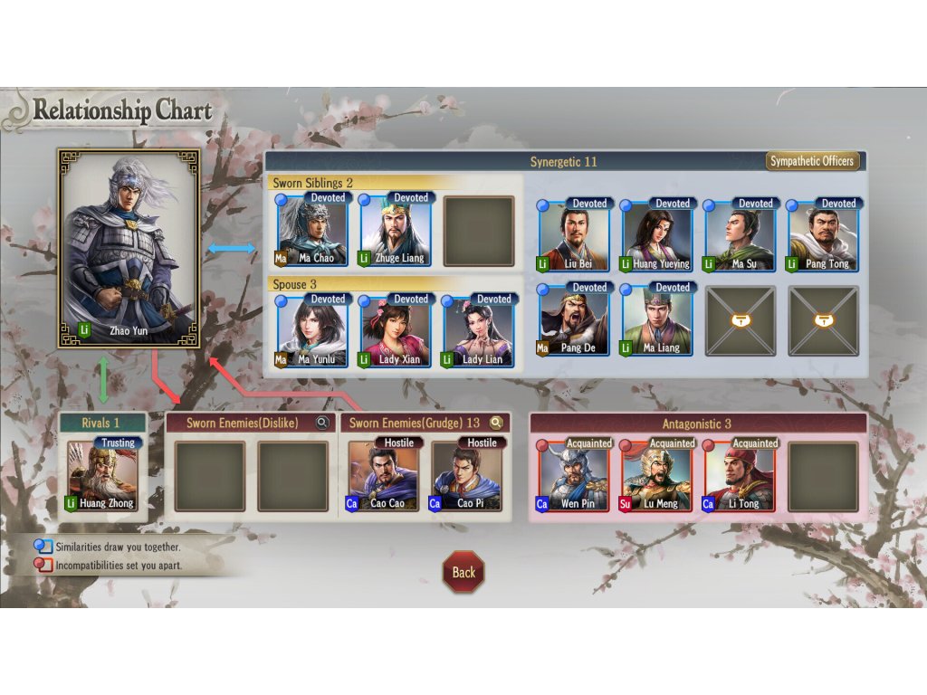 The relationship or "Links Forged" between each officer greatly affects how the gameplay unfolds. Changes in that relationship can be ascertained from the "Relationship Chart".