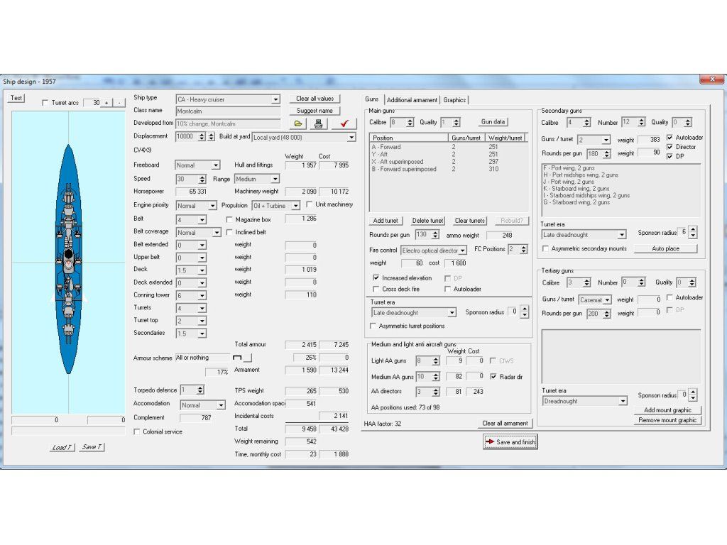 - Realistic design of ships ranging from corvettes to battleships and aircraft carriers.