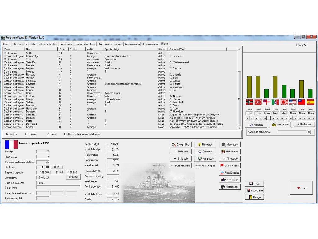Build Your Navy, from pre-Dreadnoughts to Aircraft Carriers and Missile Cruisers! Rule the Waves III is a simulation of naval ship design and construction, fleet management and naval warfare from 1890 to 1970. It will place you in the role of 'Grand Admiral' of a navy from the time when steam and iron dominated warship design up to the missile age.