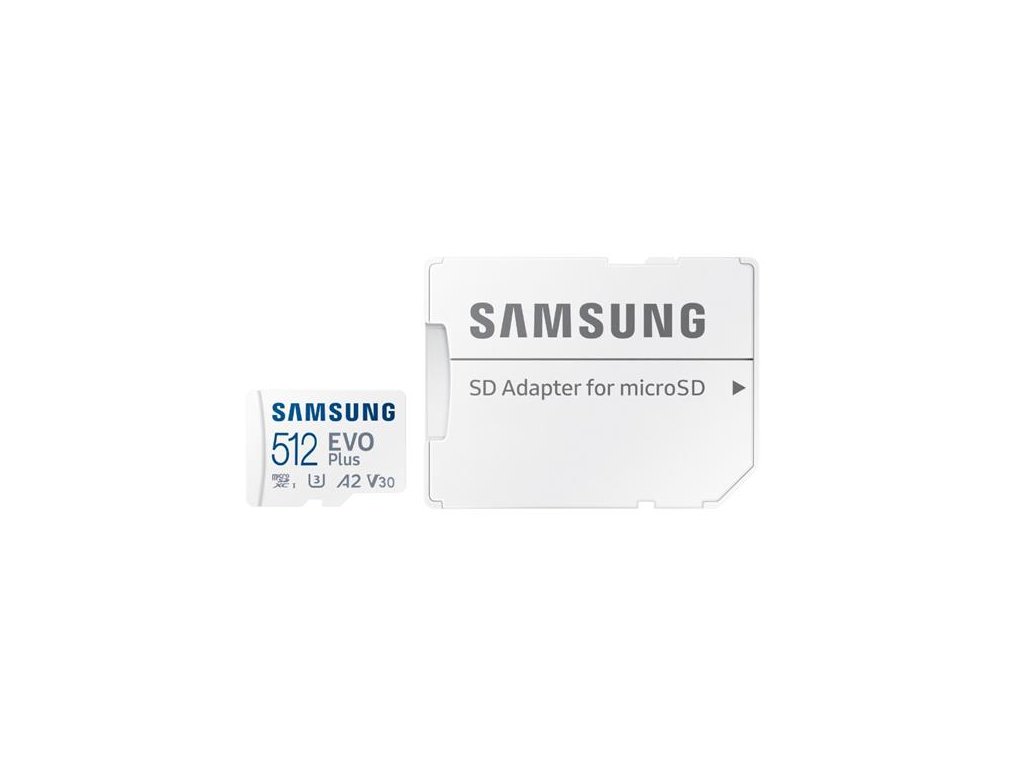 512 GB . microSDXC karta Samsung EVO Plus + adapter ( trieda U3, V30, A2 )