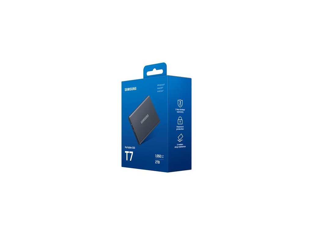 SSD je skrátka pre Solid State Drive. Už z anglického názvu vyplýva, že disky neobsahujú žiadne pohyblivé časti. Hardvér je možné zabezpečiť heslom s 256bitovým AES šifrovaním. Je uložený v odolnom kovovom tele, ktoré udrží dáta nedotknuté aj pri páde z výšky 2 metrov. K T7 môžeme s dôverou ponúkať 3-ročnú záruku.