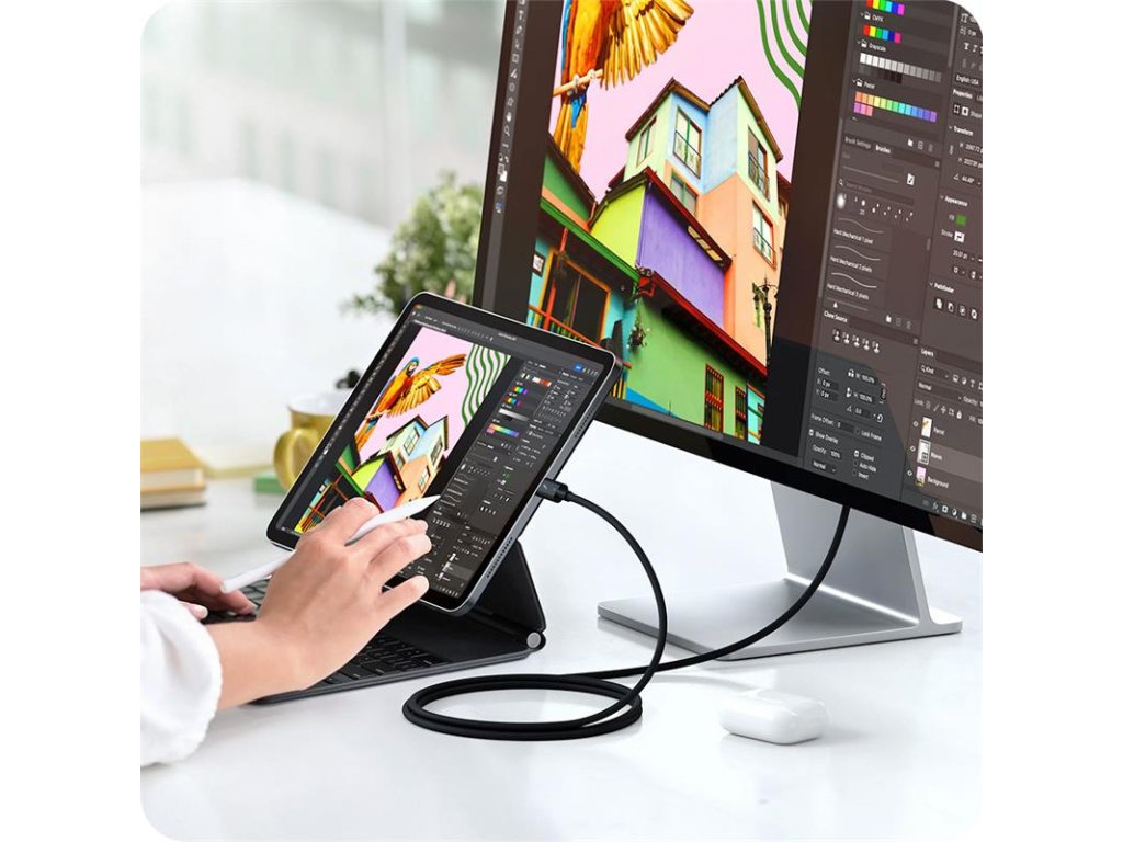 Thunderbolt 5 / USB-C kábel - kvalitný univerzálny prepojovací kábel - vyrobený z prvotriednych materiálov - pletený kábel pre lepšiu odolnosť a dlhšiu životnosť - ponúka 100% spoľahlivosť a ultra rýchlosť pri prenose dát - podporuje nabíjanie s výkonom 240W - prenosová rýchlosť dát až 120Gb/s - poskytuje rozlíšenie 8K (120Hz) na jednom monitore, 8K (60Hz) na dvoch alebo 4K (144Hz) na troch - obsahuje natívnú podporu PCle pre vyššiu rýchlosť a výkon s prenosovou rýchlosťou 64 Gb/s - dĺžka kábla 1 meter - plne kompatibilné s TB 5, TB 4, TB 3, USB4, USB3.2/3.1Dodatočné parametre