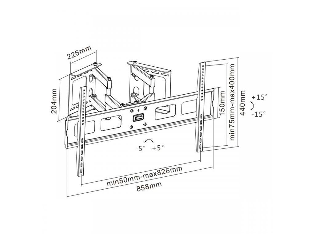 Rohový držiak na stenu pre TV, veľkosť obrazovky: 37" - 63", nosnosť: 60kg, VESA: od 200 x 200 do 800x400, náklon: -15° ~ + 15°, káblový manažment: nieDodatočné parametre