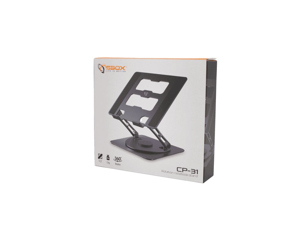 SBOX CP-31, Držiak na notebook, 360° - Pre notebooky s veľkosťou uhlopriečky: 10" - 17", maximálne zaťaženie (kg): 5, rotácia: 360°, farba: šedá, materiál: hliník, silikón, rozmery (mm): 220 x 240 x 58, hmotnosť (g): 900