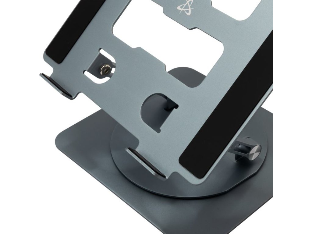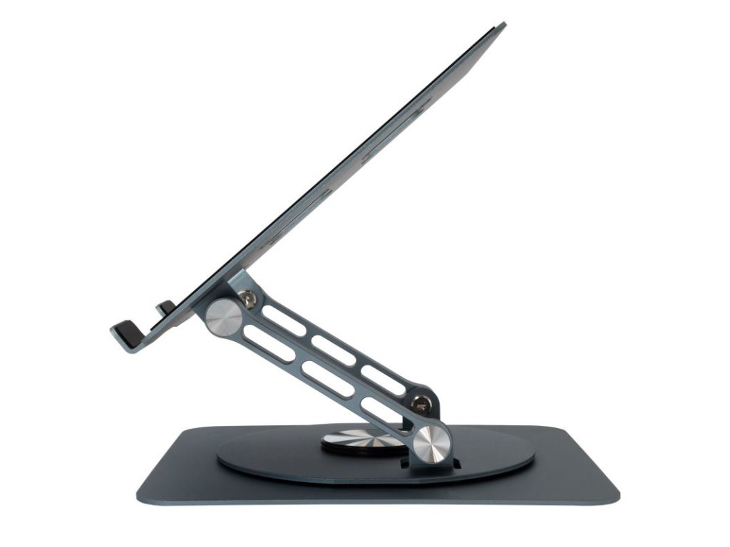 Jeho najväčšou prednosťou je otočná základňa o 360°, ktorá vám umožňuje jednoducho zdieľať obrazovku s kolegami alebo si prispôsobiť pracovnú pozíciu bez nutnosti presúvať celý stojan.