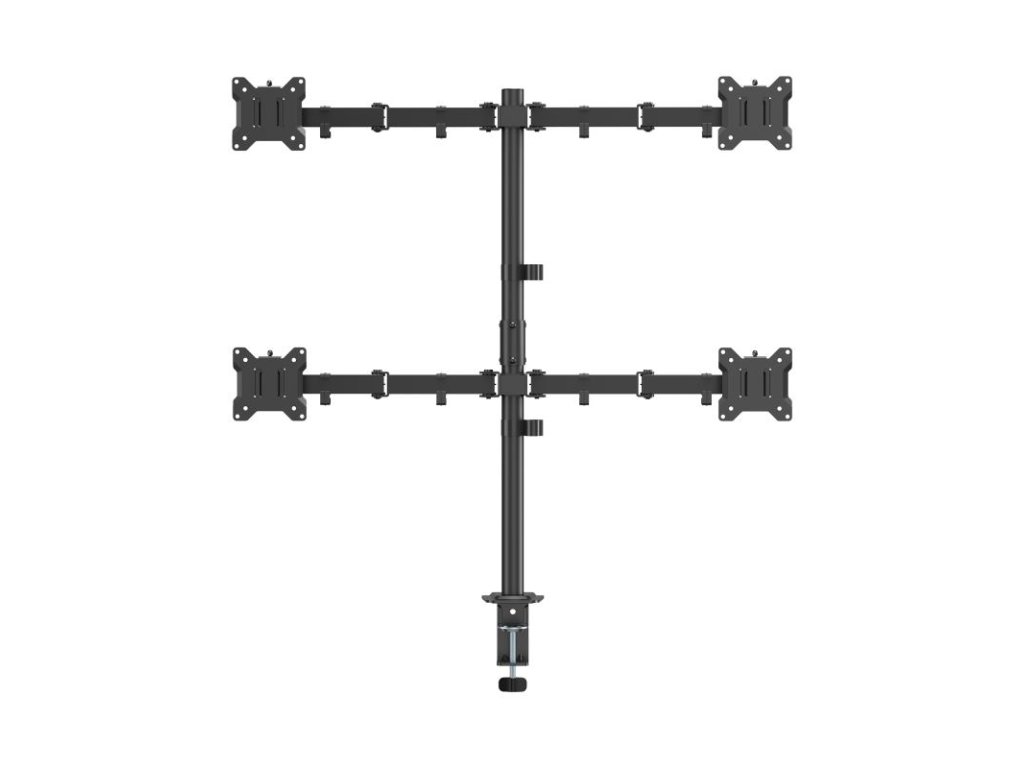 Stolný držiak SBOX LCD-352/4-3 je robustné a flexibilné riešenie určené na montáž štyroch monitorov súčasne. Je ideálny pre profesionálov, hráčov alebo kohokoľvek, kto potrebuje maximalizovať pracovný priestor a efektivitu s viacerými obrazovkami.