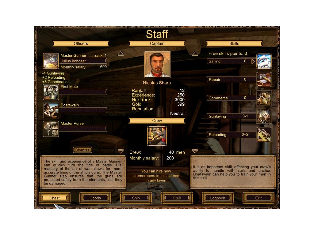 Sea Dogs is an epic role-playing game for the pirate in all of us. Return to the age of sail as a young captain looking to make a name in the world. Develop your character from humble beginnings and rise to control all of the islands for your country or yourself. You can give your allegiance to one of three countries or choose to serve only yourself as a swashbuckling pirate. Build your wealth and reputation and use it to acquire bigger ships and better crewman. Hire other captains to join you in attacking and capturing other ships or forts. Where you go and what you do is up to you. The choices in Sea Dogs are endless, and so is the fun.