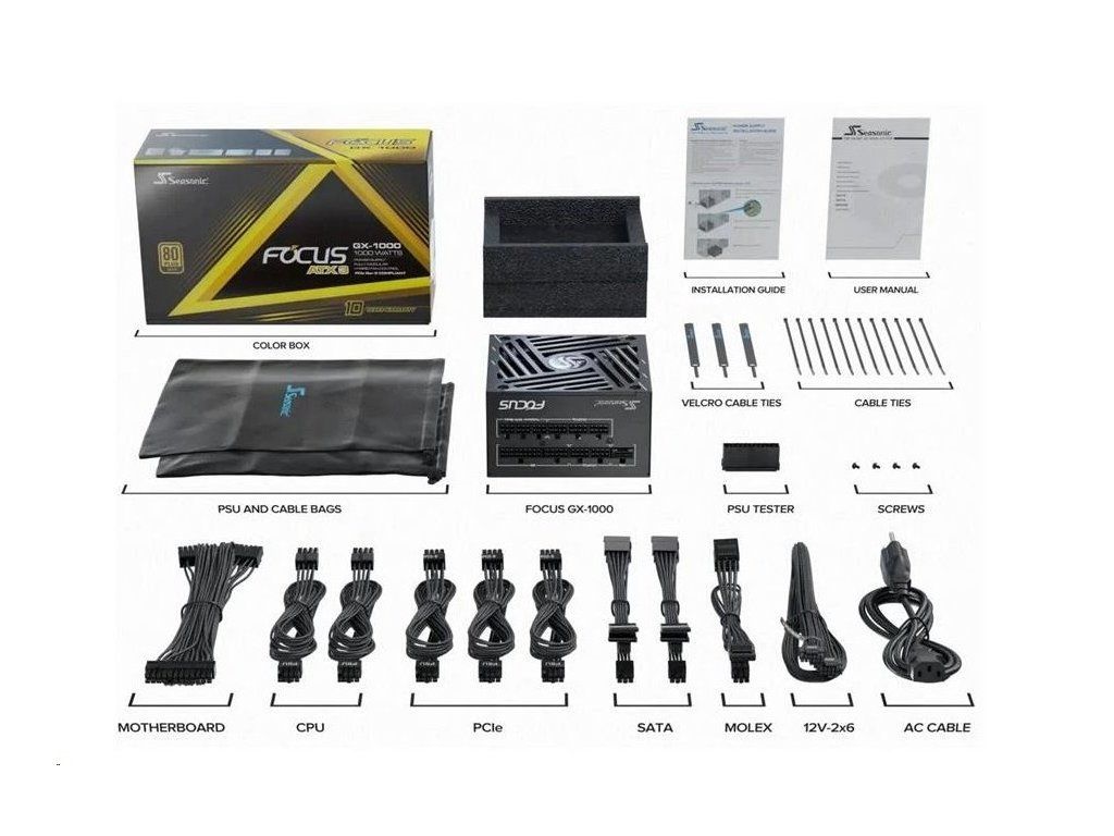 Zdroj 1000W, SEASONIC FOCUS GX-1000 GOLD ATX3.1 modular, retail