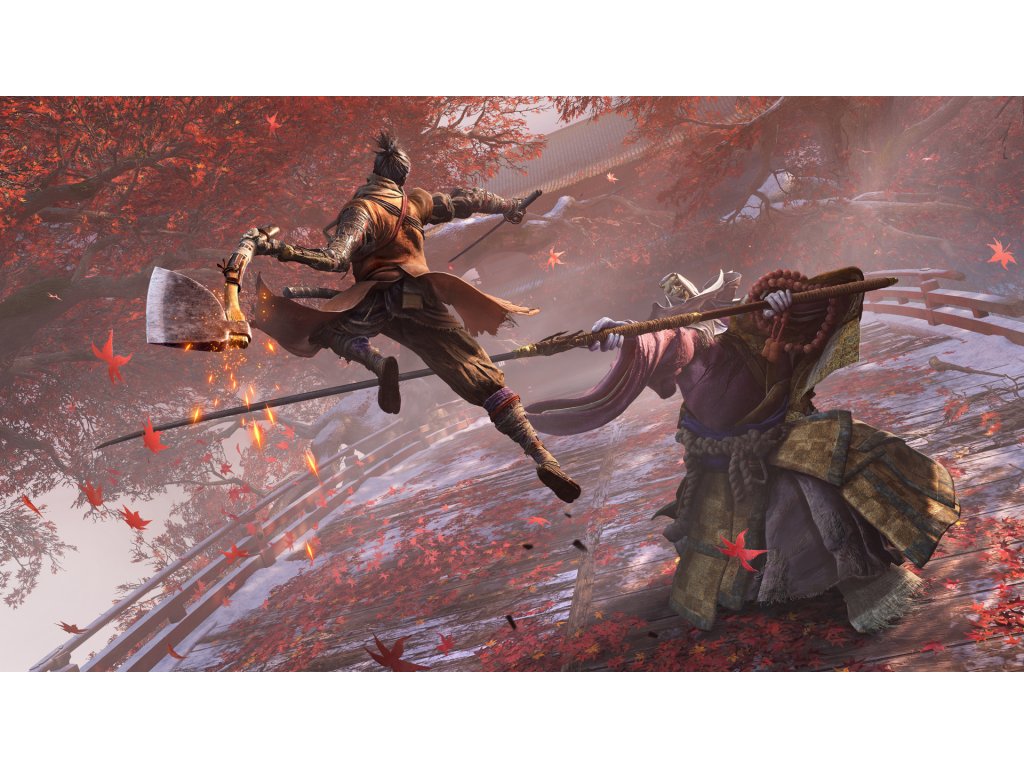 In combat, the protagonist uses two katanas. Players can switch between them, but they cannot be dual-wielded. Sekiro also has a prosthetic arm replacing his missing limb. The Shinobi Prosthetic, as it is called in the game, can be fitted with various attachments, which serve different purposes. Grappling hook allows climbing into elevated areas to search for items or stealthy plan attack from above, axe can be equipped to shatter enemies’ shields, flamethrower lights enemies on fire and can also be used to ignite players’ katana, and many more. Equippable tools can be upgraded by different means, such as finding crafting materials or spending skill points.