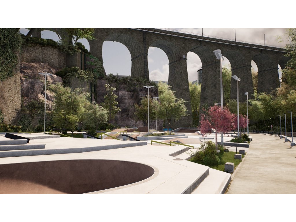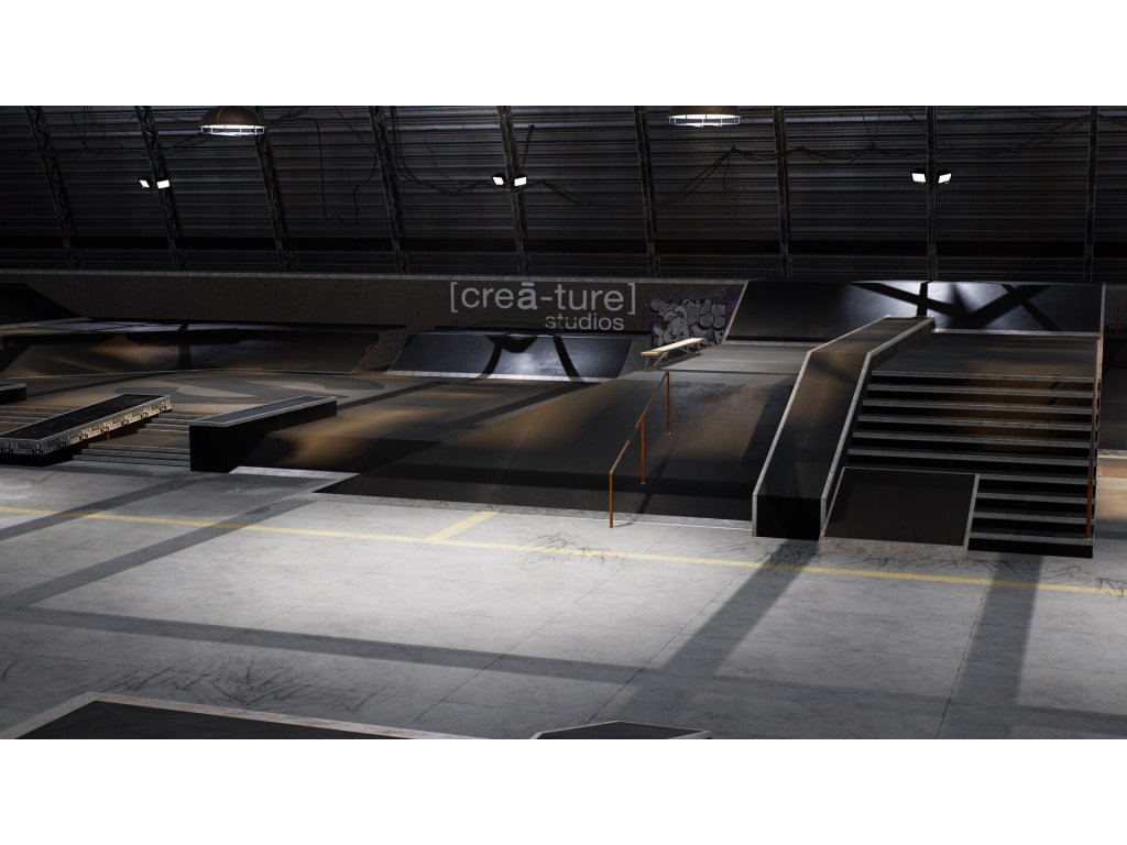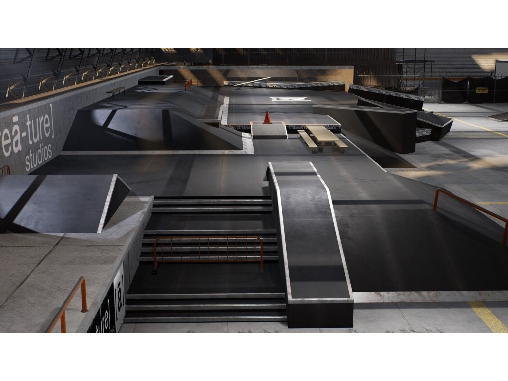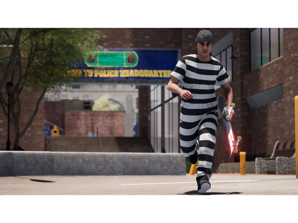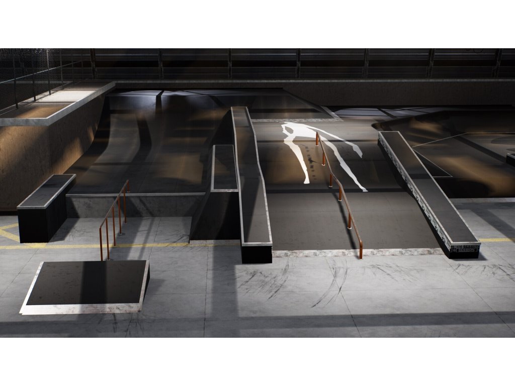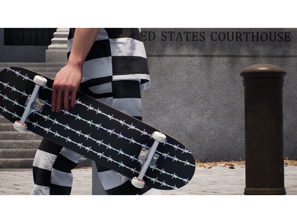 Skate the Péitruss skatepark in Luxembourg, practice in the dedicated Hangar area, and customize your skater and skateboard with a prisoner outfit and exclusive grip tapes.