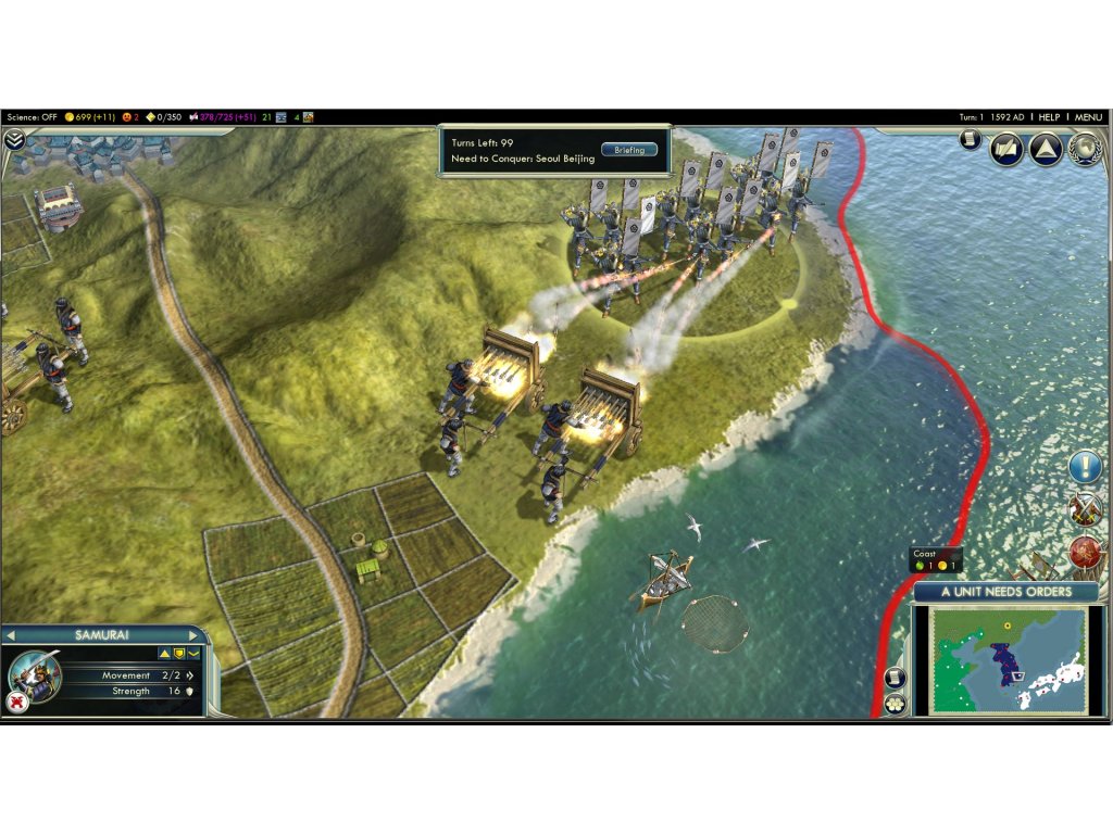 The Korea Civilization and Scenario Pack brings you both the Korea Civilization and the new Scenario: The Samurai Invasion of Korea, to further enhance your Civilization V experience. Rule the world as Sejong, King of the Choson Dynasty, with your invincible Turtle Ships and Hwach’a artillery!