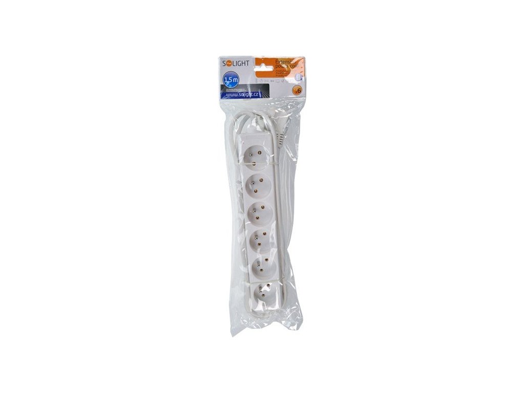 Solight predlžovací prívod, 6 zásuviek, biely, 1,5 m