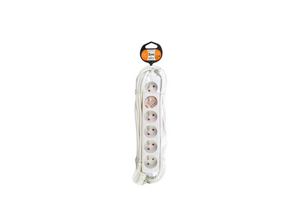 Solight predlžovací prívod, 6 zásuviek, biely, 5m