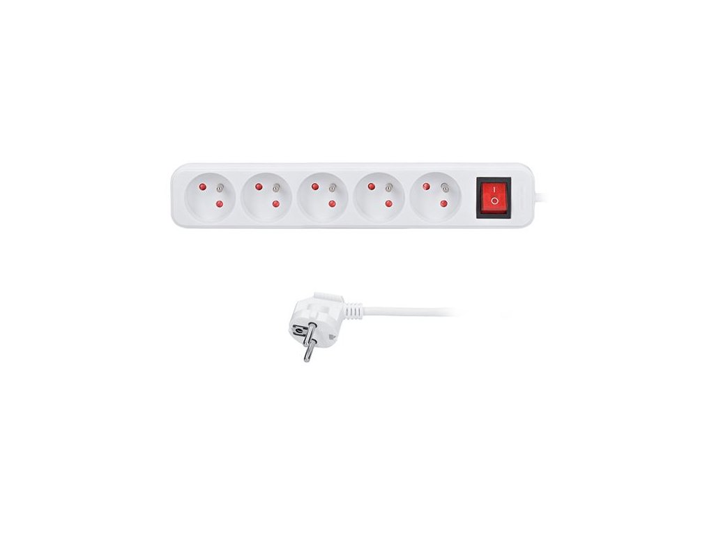 Predlžovací prívod na každodenné použitiePraktický biely predlžovací kábel s dĺžkou 3 metre a piatimi zásuvkami umožní priviesť elektrickú energiu tam, kde nie je k dispozícii pevná zásuvka. Podsvietený vypínač umožňuje pohodlné ovládanie všetkých pripojených zariadení. Ideálny pre domáce aj kancelárske využitie.