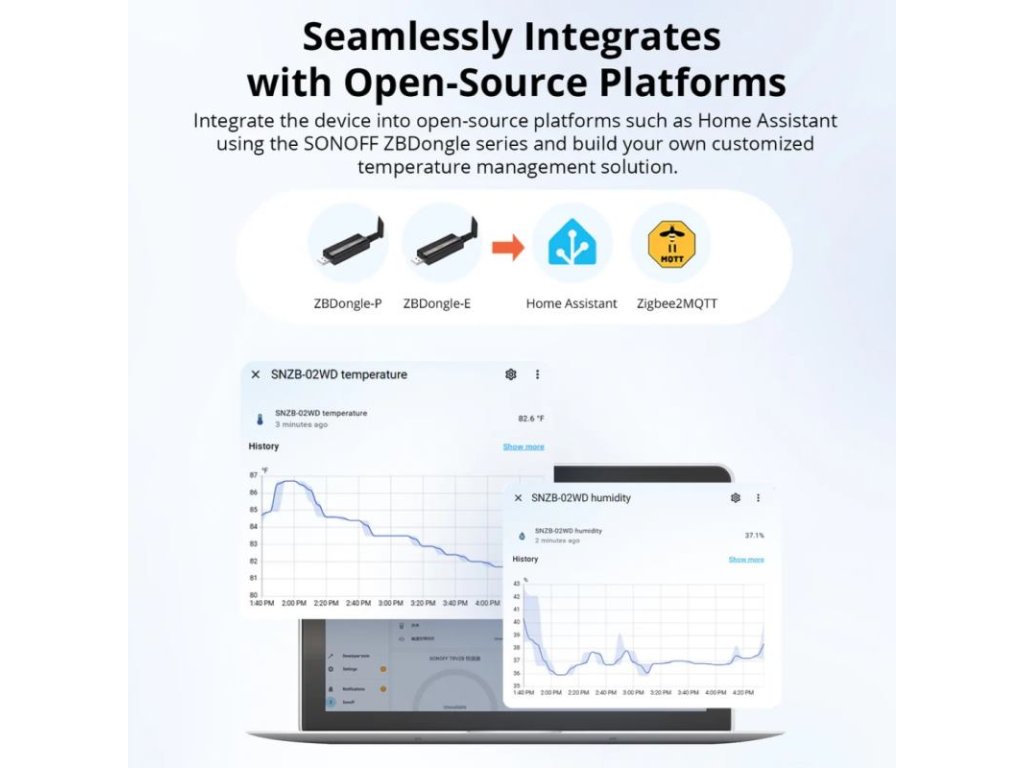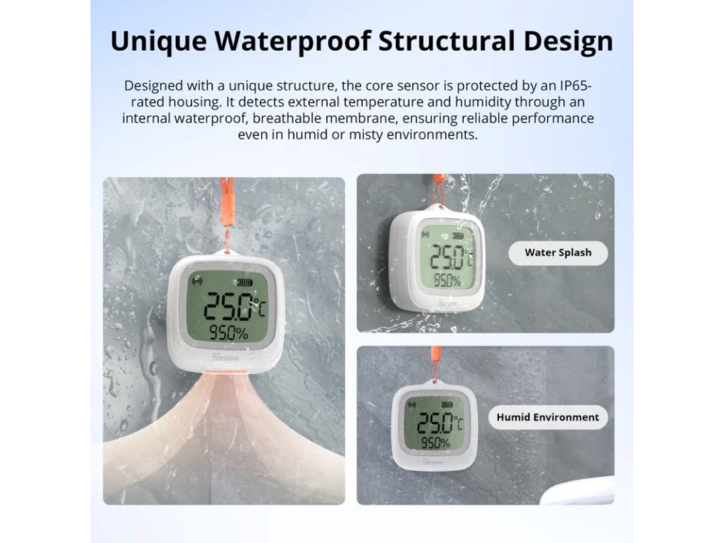SNZB-02WD je inteligentný senzor teploty a vlhkosti s LCD displejom, ktorý využíva Zigbee 3.0. Je určený na diaľkové monitorovanie podmienok v miestnosti a na automatické prepínanie iných Zigbee zariadení (a pri použití so Zigbee bránou aj WiFi zariadení) na základe nameraných údajov. Dáta sú dostupné aj lokálne na LCD displeji.