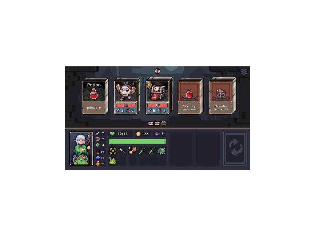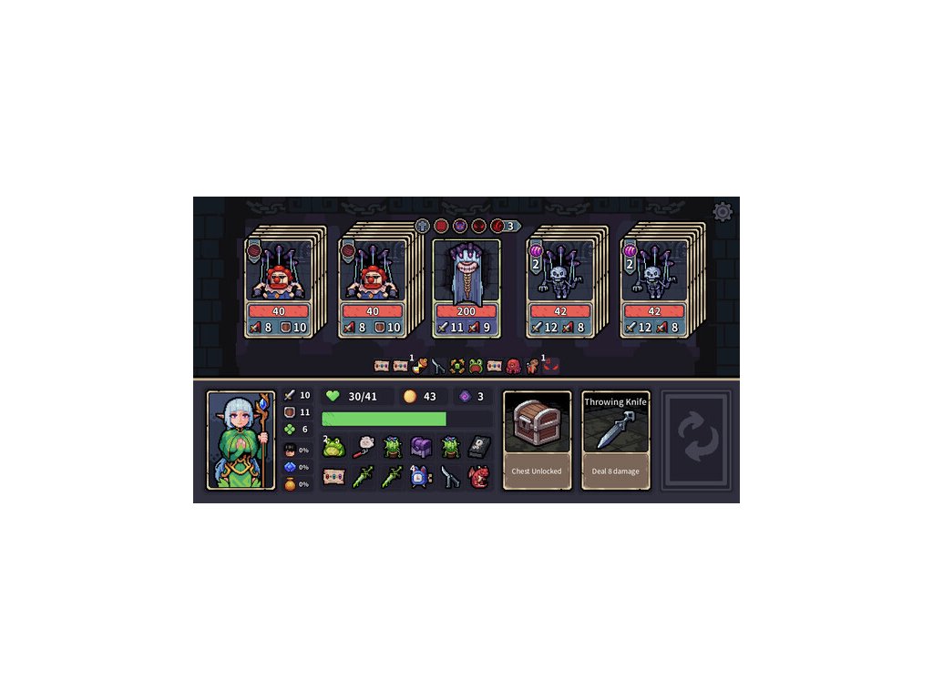 Exploring this unknown world means never knowing what the next card will reveal. It could be an elite enemy, a life-saving item, or a prize chest filled with fancy equipment. Every flip brings a new challenge or opportunity!