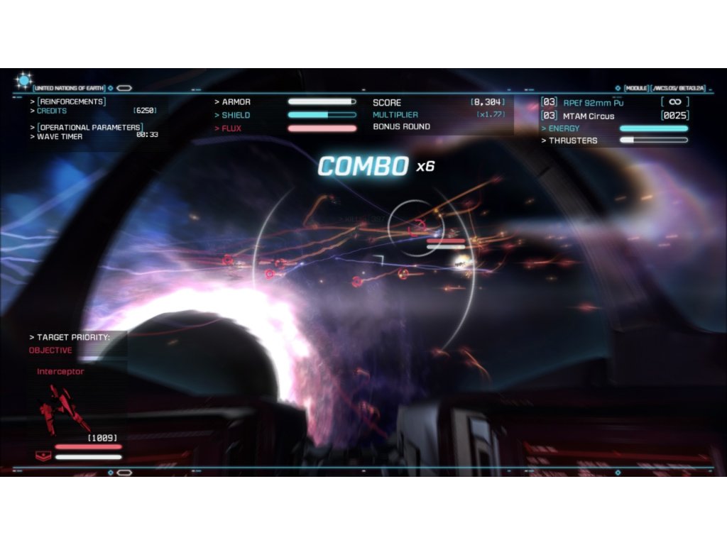 Take to the cockpit of one of three Strike Suits, engaging waves of enemies, building your multiplier and putting as many points on the board as possible. You’ll need to use your head, though. In between rounds, use credits to purchase upgrades and reinforcements, maximizing your potential in the next round. The longer you can stay alive, the bigger your score, and the higher up the leaderboard you’ll find yourself.