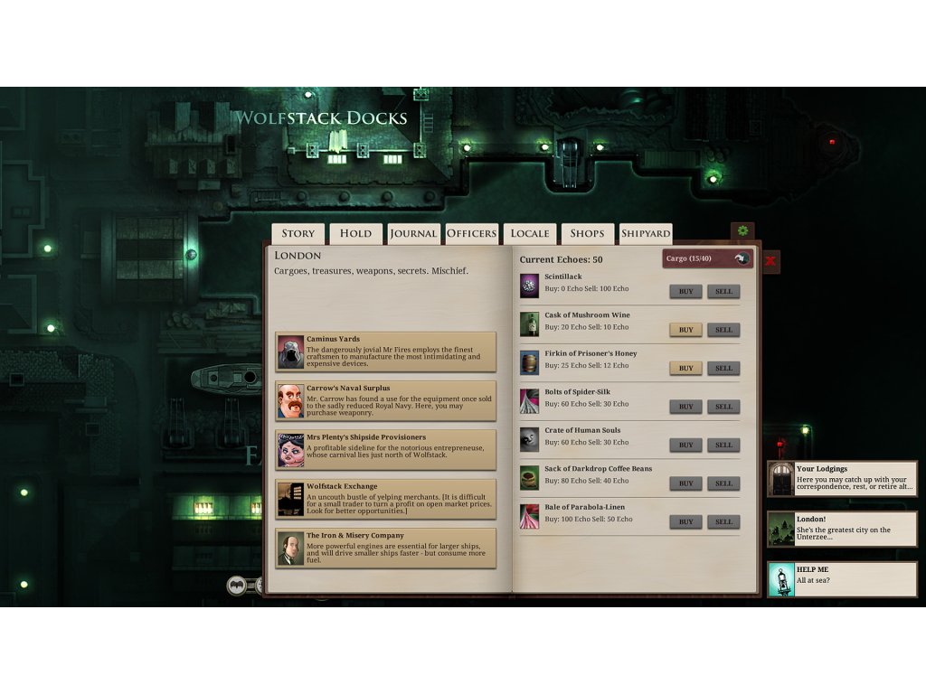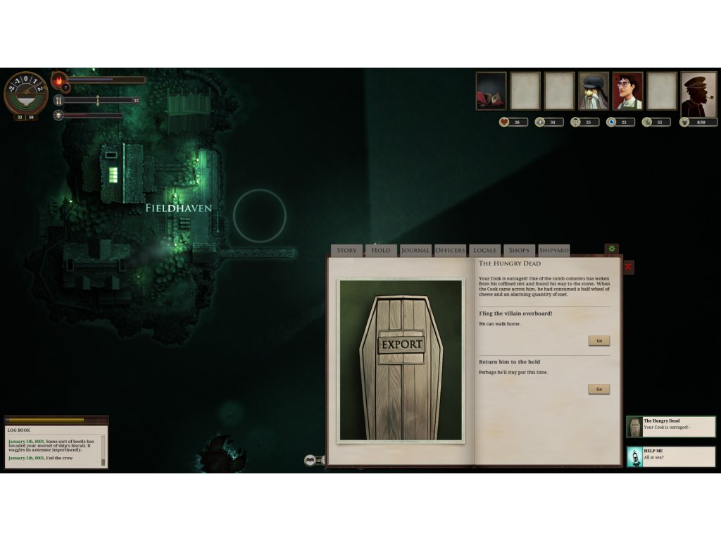 Real-time combat against ships and Zee-beasts, spider-crewed dreadnoughts and sentient icebergs. Stray too far from civilization and your crew will grow fearful and eventually lose their sanity. Upgrade your steamship with powerful engines, cannons and pneumatic torpedo guns. Hire unique officers, each with their own story. Discover the treasures the zee has claimed. Choose a ship’s mascot. Trade or smuggle silk and souls.