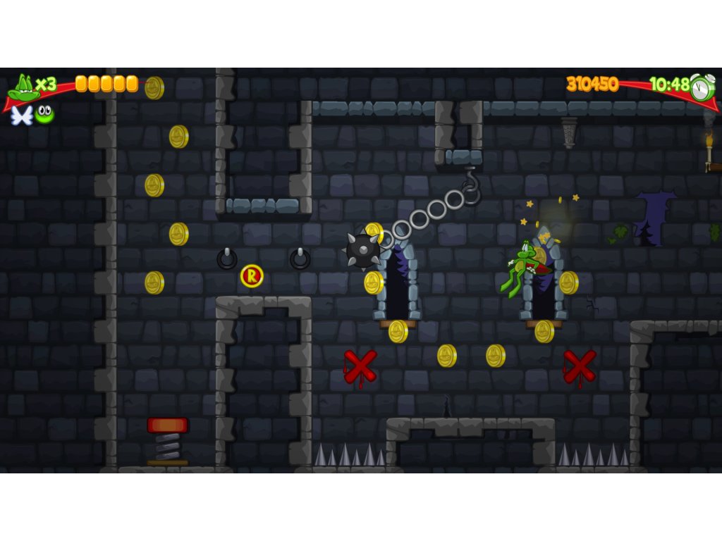 You must explore and traverse 24 finely crafted levels and additional boss levels across 6 differently-themed worlds. The goal of each level is to collect a set number of coins, and then reach the exit. The ultimate aim, as ever, is to save the day, beat the witch and get the girl.