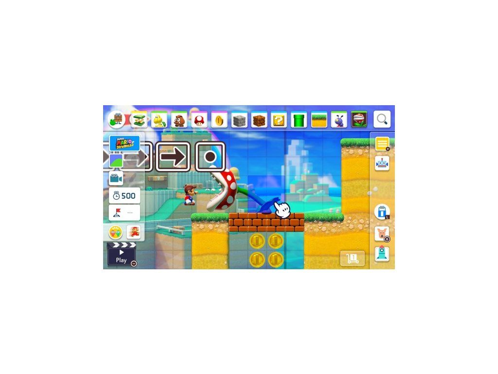 Vytváranie vlastných úrovní Super Mario je jednoduché a teraz môžu dvaja hráči spolupracovať na rovnakej obrazovke. Jednoducho si vyberte ikonické objekty a nepriateľov a umiestnite ich, kam chcete. Môžete si vybrať z niekoľkých rôznych prostredí a štýlov hier Super Mario - a teraz sa k nim pridáva aj nový štýl Super Mario 3D World! Môžete dokonca kombinovať známe prvky a vytvárať veci, s ktorými sa Mario ešte nikdy nestretol.