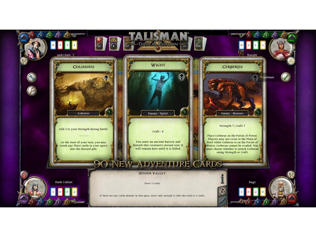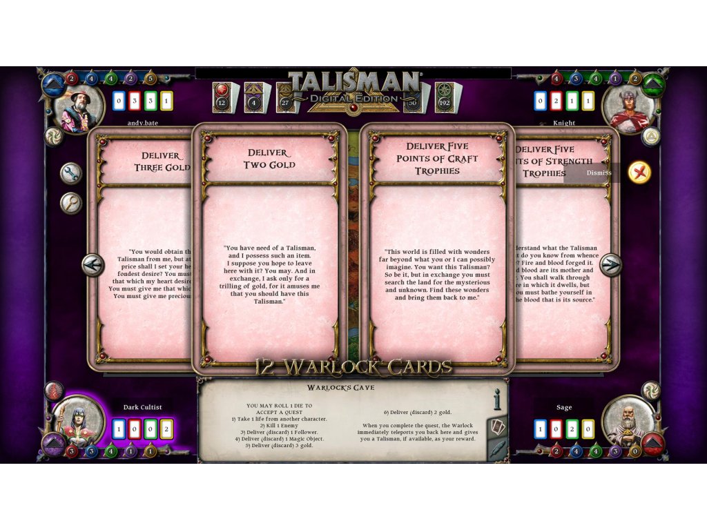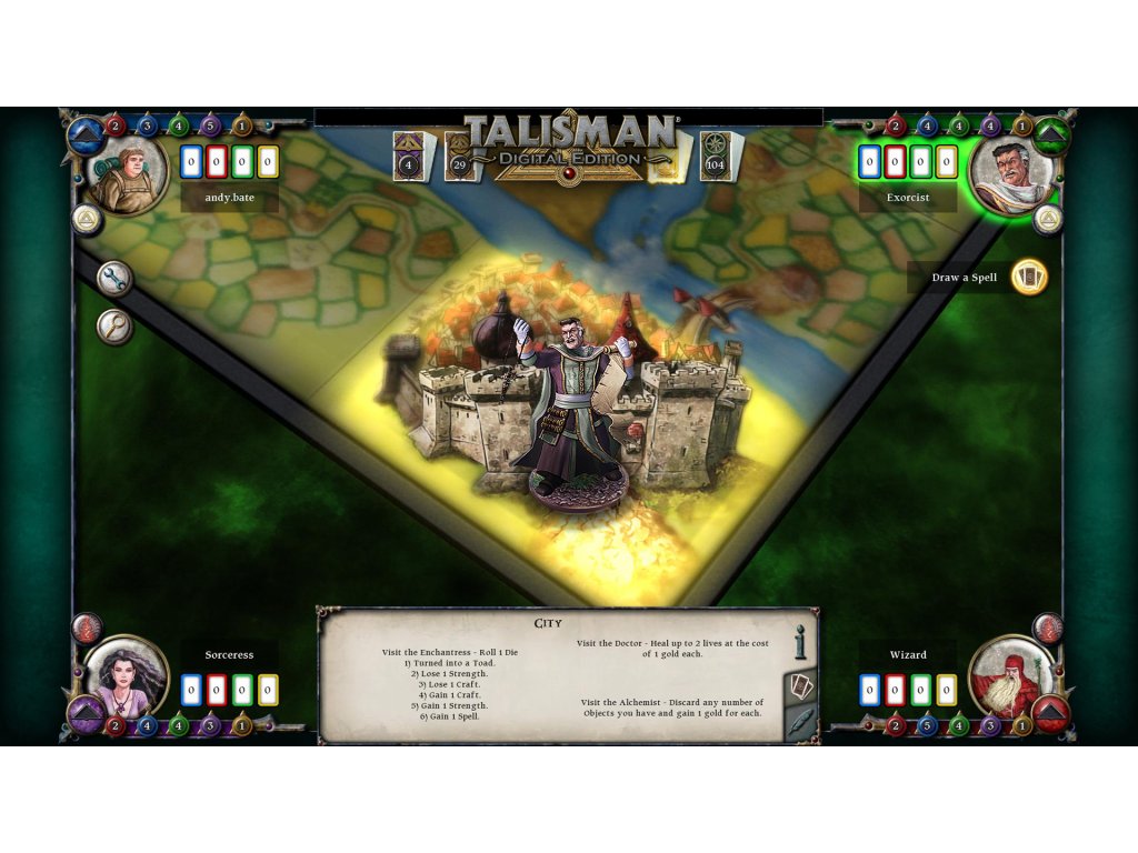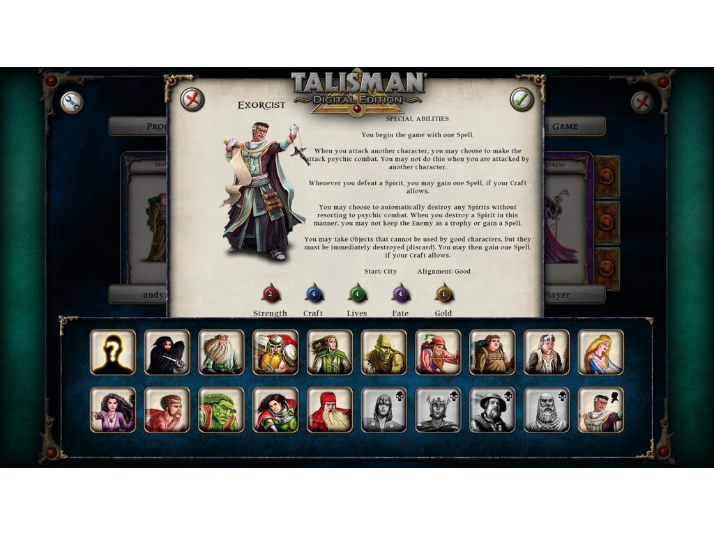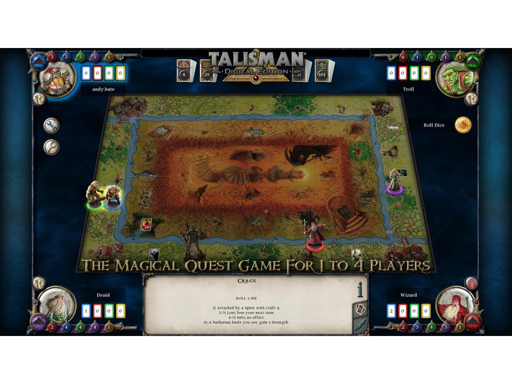 In Talisman Digital Edition, there are 14 characters a player can control, from the heroic Warrior to the powerful Sorceress. In this perilous adventure, players battle it out to journey across a dangerous land and be the first to claim the Crown of Command, a magical artefact with the power to destroy all rivals and make the bearer the true ruler of the kingdom. On your travels, you will need strength, courage and some good dice rolls to survive the dangers you face and beat your opponents to the centre of the board.