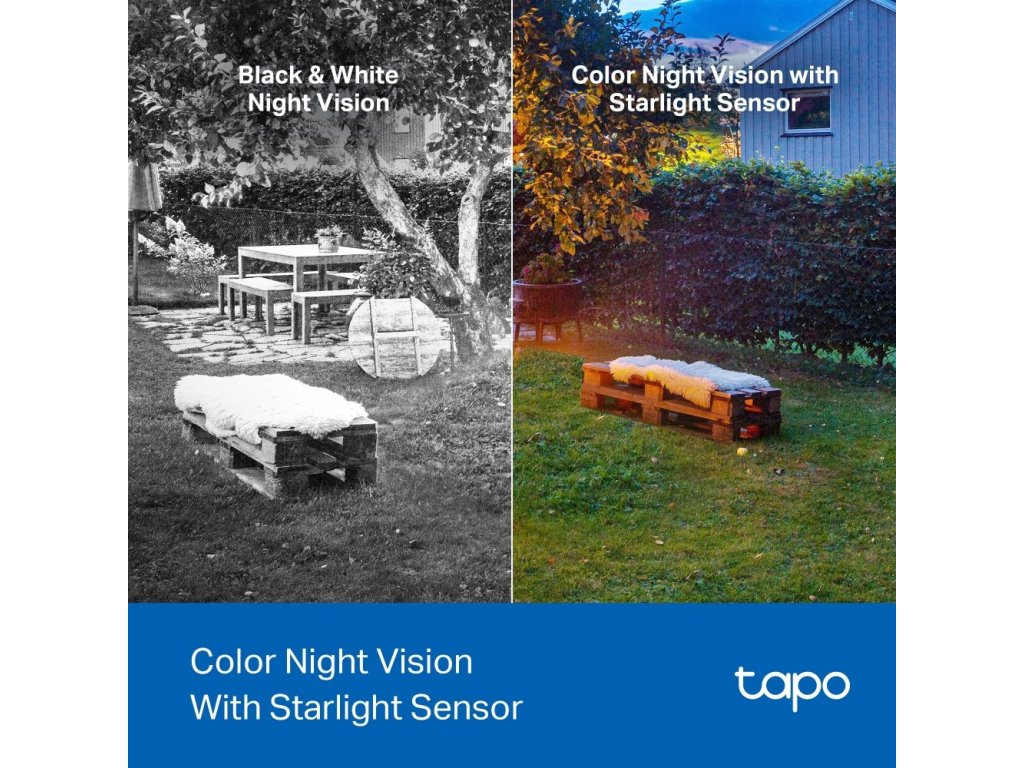 Farebné nočné videnie: Zlepšuje zabezpečenie tým, že vďaka vstavaným reflektorom a senzoru hviezdneho svetla odhaľuje jasnejšie, farebné snímky a živé detaily aj za zlých svetelných podmienok.