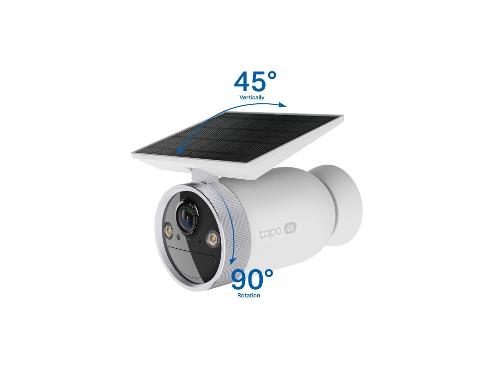 Bezpečnostní kamera napájená z baterie s vestavěným solárním panelem Vychutnejte si dokonale ostrý 4K obraz, dlouhou výdrž na baterii a celodenní provoz pomocí vestavěného solárního panelu. Tapo C465 vám díky AI detekci, dvoupásmové Wi-Fi a odolnosti IP65 zajistí spolehlivé zabezpečení kdekoliv na pozemku – bez kabelů a bez kompromisů. *Kamera nabízí ultra ostrý 4K obraz, díky kterému uvidíte všechny důležité detaily. *Vestavěný solární panel dokáže kameru napájet celý den jen z 50 minut slunečního svitu. 1 *Magnetická základna umožňuje rychlou montáž a lanko proti manipulaci brání odcizení. *Baterie 7 800 mAh udrží kameru v provozu až 180 dní na jedno nabití. 2 *Kamera rozpozná osoby, zvířata i vozidla a pošle vám rychlá upozornění — bez měsíčních plateb. *5 GHz nabízí plynulejší 4K video, 2,4 GHz lepší dosah. Můžete si vybrat podle potřeby. 3 *Nastavte si vlastní světelné a zvukové alarmy, určete zóny detekce i oblasti soukromí. *IP65 chrání před deštěm, sněhem, prachem i velkými teplotními výkyvy. *Záznam můžete ukládat na microSD kartu až 512 GB nebo využít cloud Tapo Care. 4