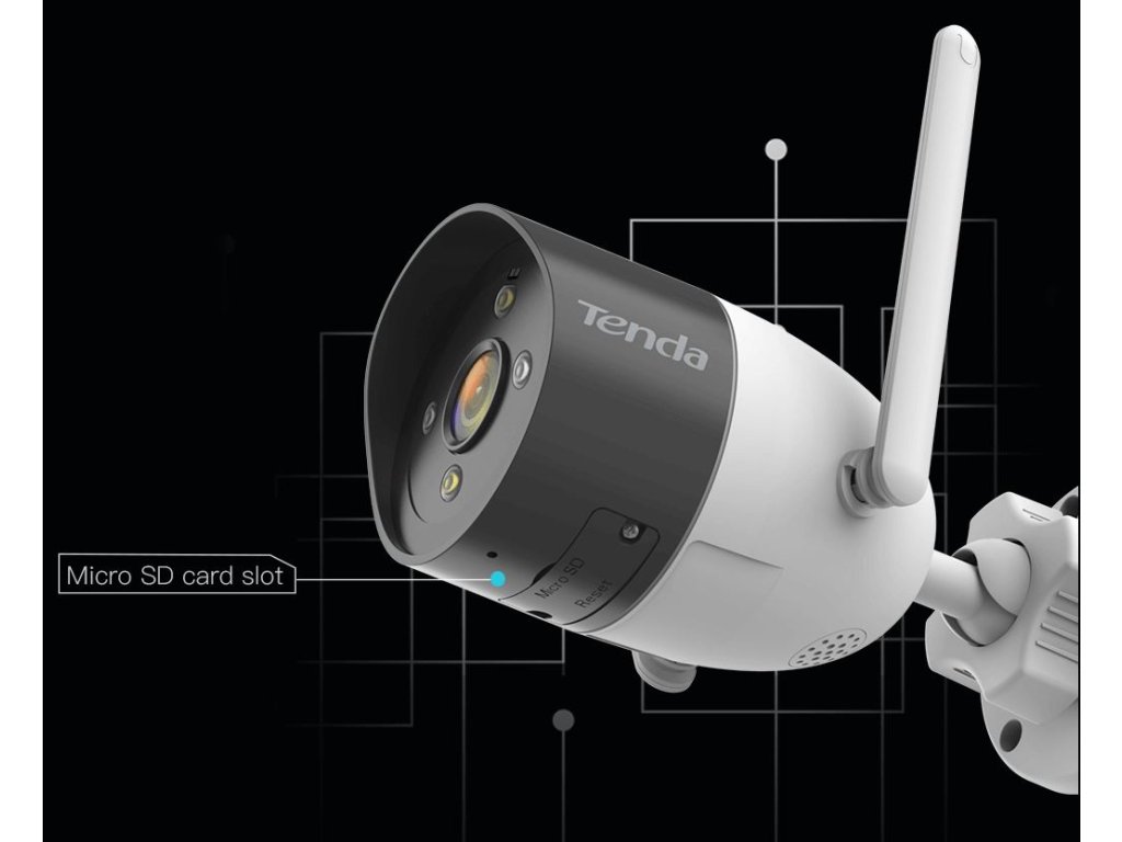 Technické parametry Wi-Fi standardy: IEEE 802.11b/g/n, 300 Mb/s Ethernet: 1x LAN RJ45 port 10/100 Mb/s Rozlišení: FullHD (1920 x 1080 px) Frekvence: 2,4 GHz Zabezpečení: 64/128-bit WEP, WPA/WPA2, WPA-PSK/WPA2-PSK Způsob ovládání: SMART aplikace do mob. telefonu Tenda TDSEE Rozhraní: 1x Reset, 1x slot microSD max. 128 GB, 1x konektor Jack, 1x RJ45 LED indikace: ano, 1x červená/modrá Systém mobilního telefonu: Android 4.4 a vyšší, iOS 9.0 a vyšší Úhel záběru: 110° Třída krytí/odolnosti: IP66 Slot na microSD kartu: ano, max. 128 GB Class10 Optika: 4 mm, F = 1.6 Přenos zvuku: ano, obousměrnný, obsahuje mikrofon a reproduktor Vyvolání poplachu: ano, světlem i zvukem Nahrání vzkazu který se přehraje při detekci pohybu: ano, 3 nahrávky, každá max. 10 vteřin Dosah nočního LED/IR LED přísvitu: 30 m Antény: ano, 2x venkovní otočné Kódování: H.264 Další funkce: ICR, 3D redukce šumu, DWDR, kompenzace světla, ROI Provedení: outdoor, venkovní Provozní teplota: -30° až +50 °C Rozměry (v x š x h): 72 x 175 mm Certifikace: CE, RoHS, FCC, RCM