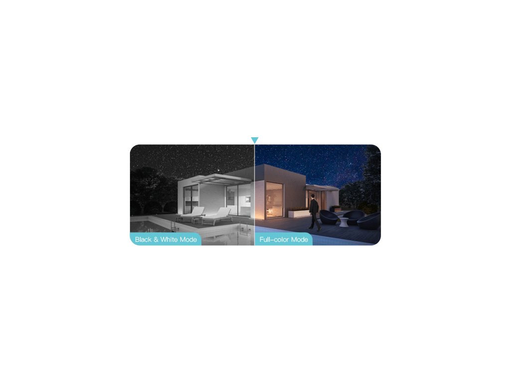 Perfektní video ve dne i v noci Kamera RT3 obsahuje LED diody pro noční svícení. Dvě bílé LED diody a další dvě infračervené IR LED diody pro přísvit v noci a korekci slunce ve dne. Na výběr je několik druhů nočního vidění (Smart mód, Plněbarevný mód, Černobílý mód). Je možné ponechat režim nočního svícení zapnutý, vypnutý nebo jej kamera aktivuje a deaktivuje automaticky.