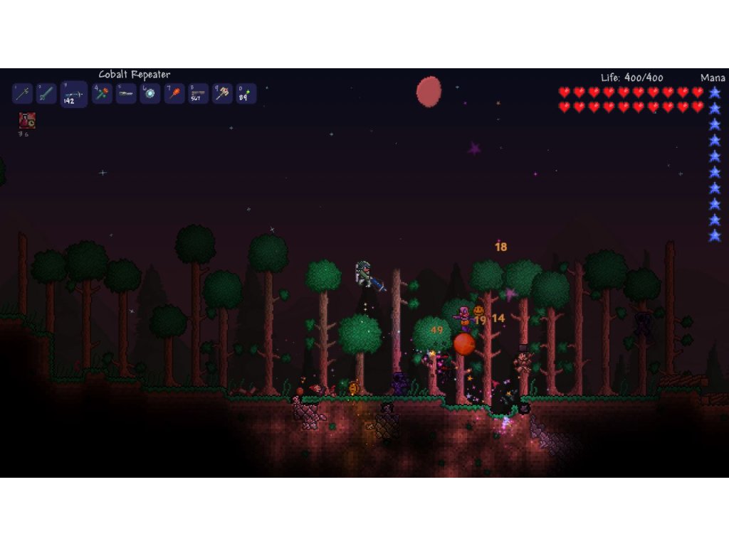Grab your tools and go! Make weapons to fight off a variety of enemies in numerous biomes. Dig deep underground to find accessories, money, and other useful things. Gather resources to create everything you need to make the world your own. Build a house, a fort, or even a castle. People will move in to live there and perhaps even sell you different wares to assist you on your journey.