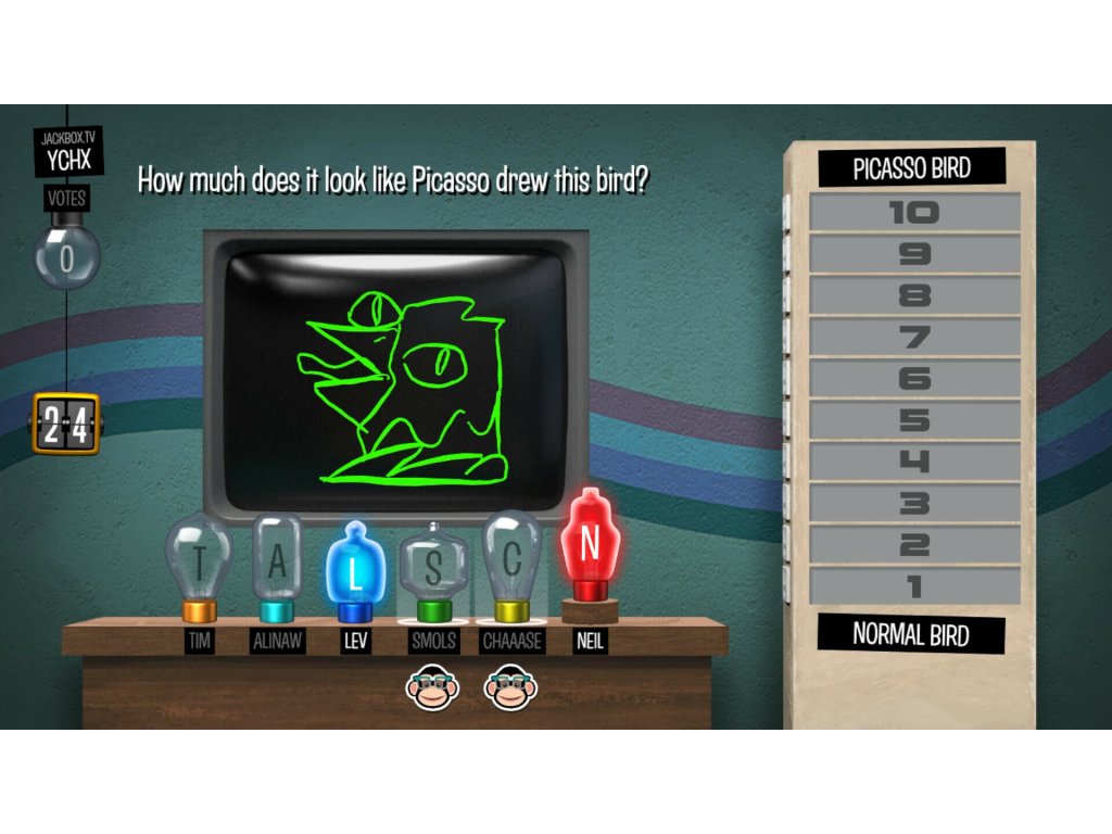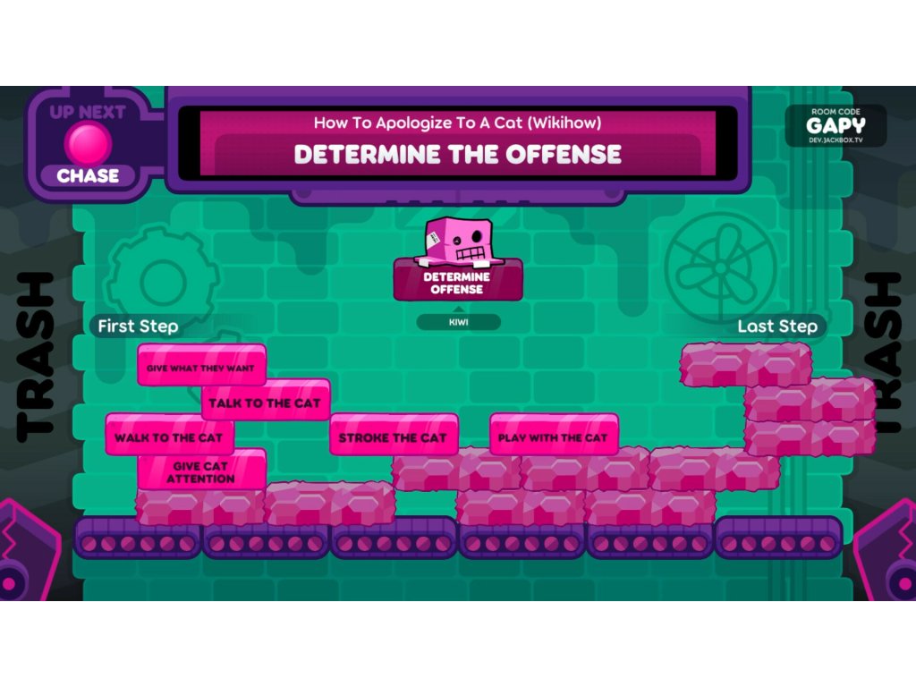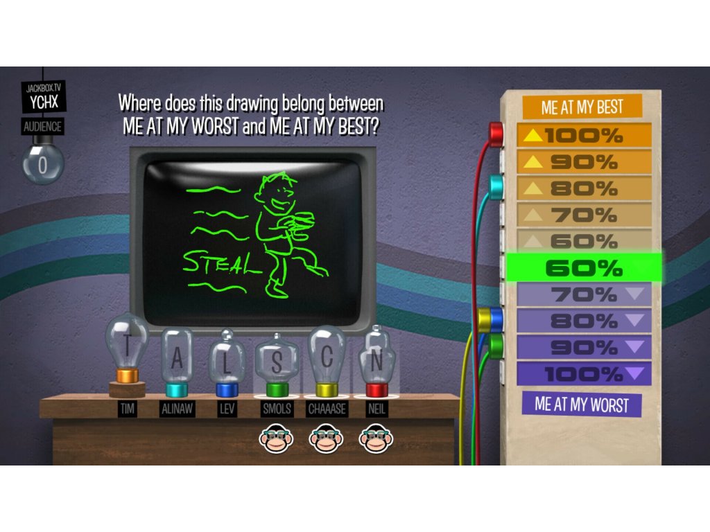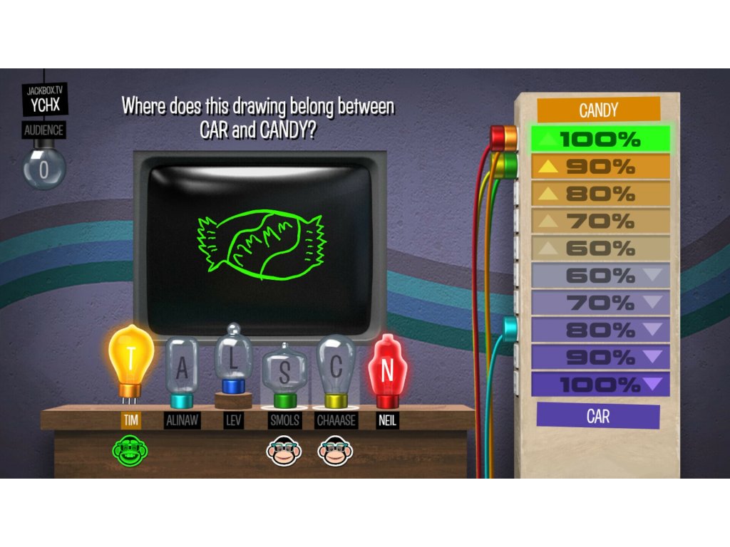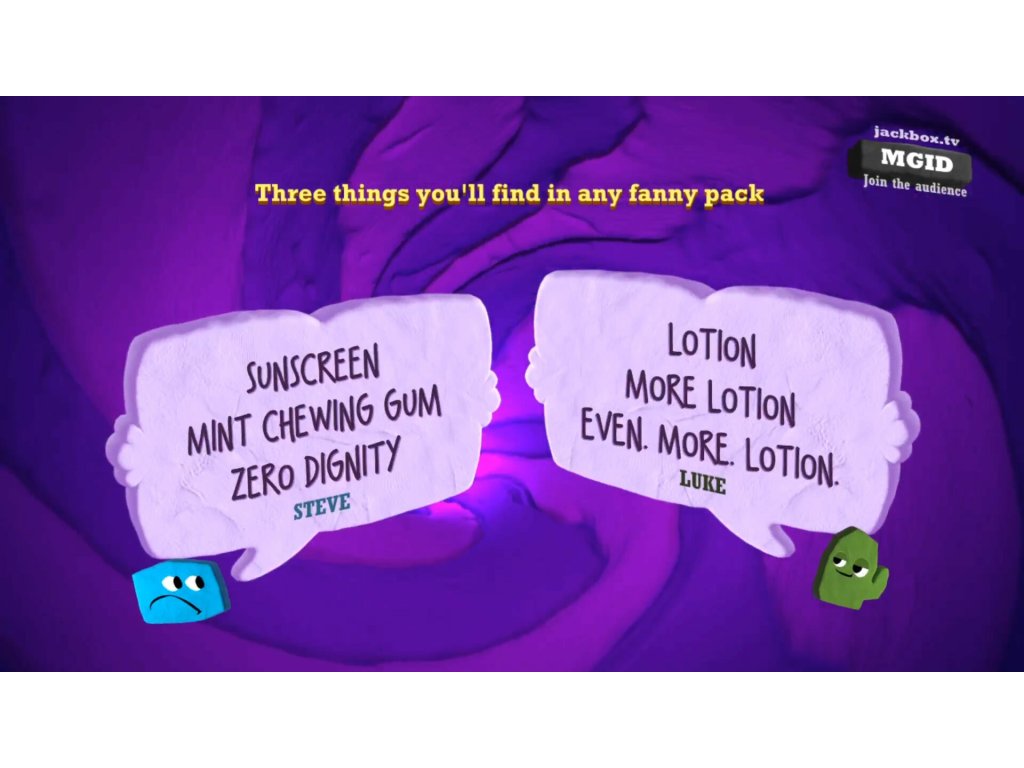 The Jackbox Party Trilogy 3.0 contains all of the hit games from The Jackbox Party Pack 7 (Quiplash 3, The Devils and the Details, Champ’d Up, Talking Points, Blather Round), The Jackbox Party Pack 8 (Job Job, Weapons Drawn, The Wheel of Enormous Proportions, Drawful Animate, The Poll Mine), and The Jackbox Party Pack 9 (Fibbage 4, Quixort, Junktopia, Nonsensory, Roomerang).
